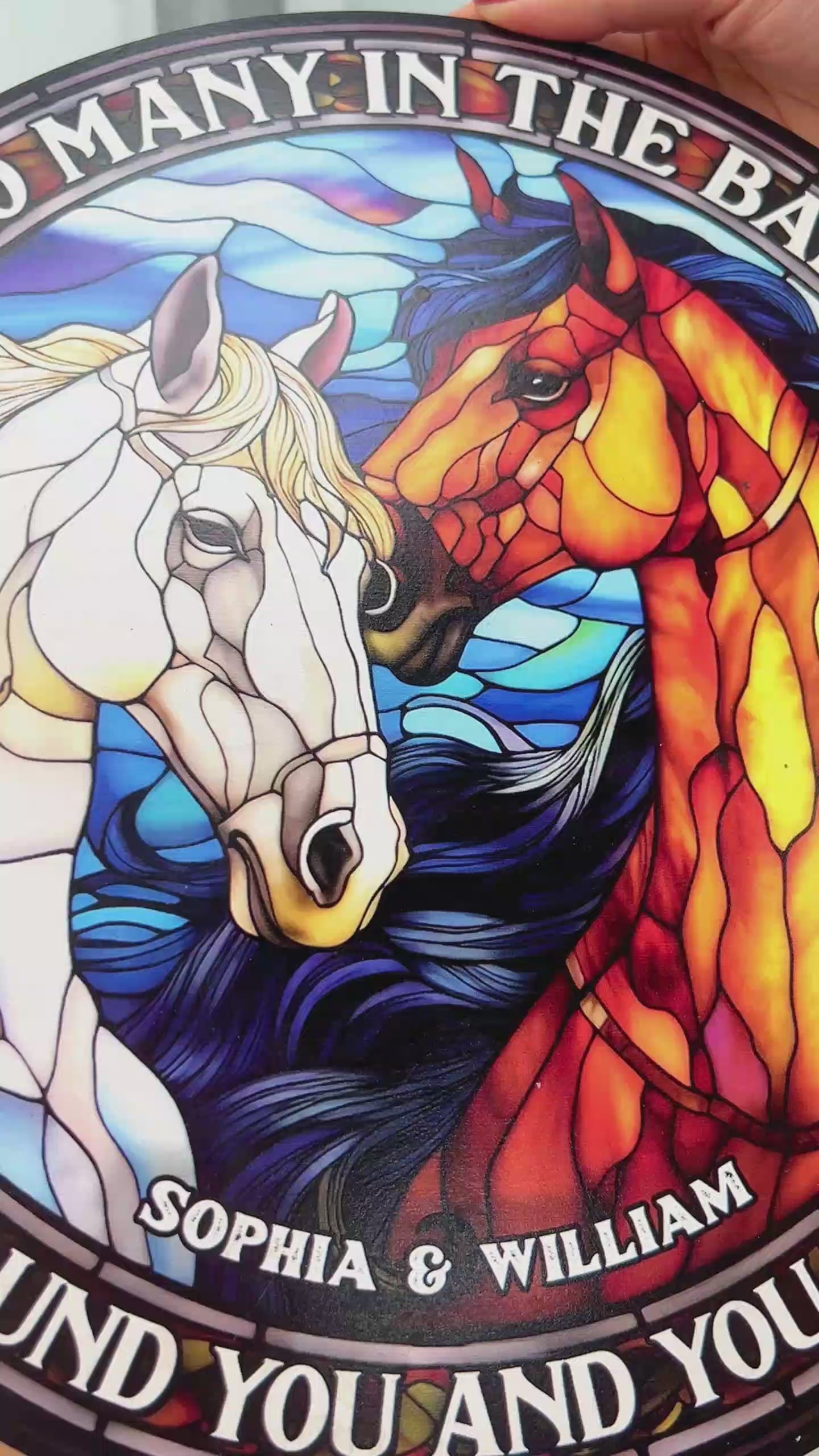 So viele im Stall - Personalisiertes rundes Holzschild mit Pferdemotiv