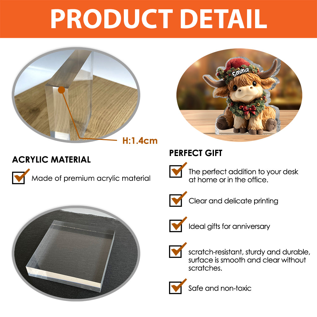 Niedliche Hochlandkuh – Personalisierte Acrylplakette in Form einer Hochlandkuh