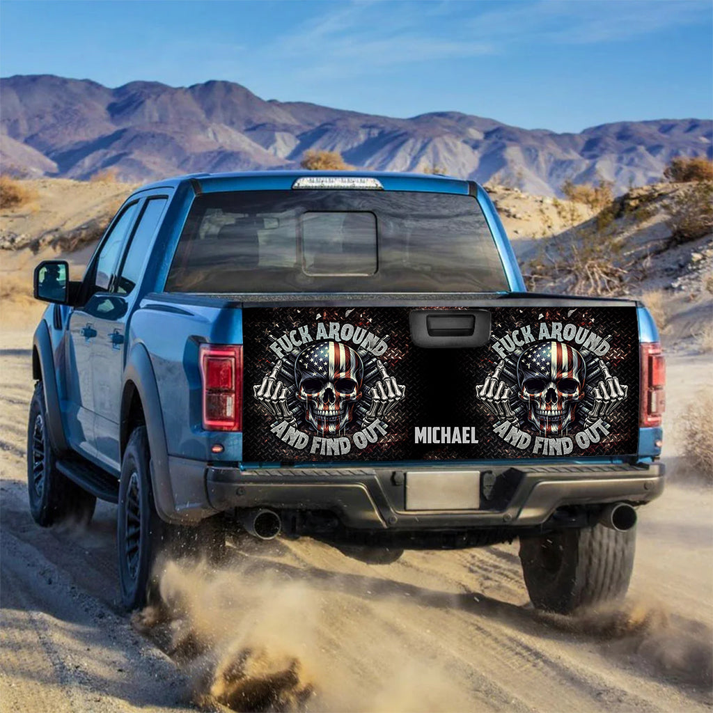Amerikanische Flagge mit Skelettmotiv – Personalisierter Totenkopf-LKW-Heckklappenaufkleber
