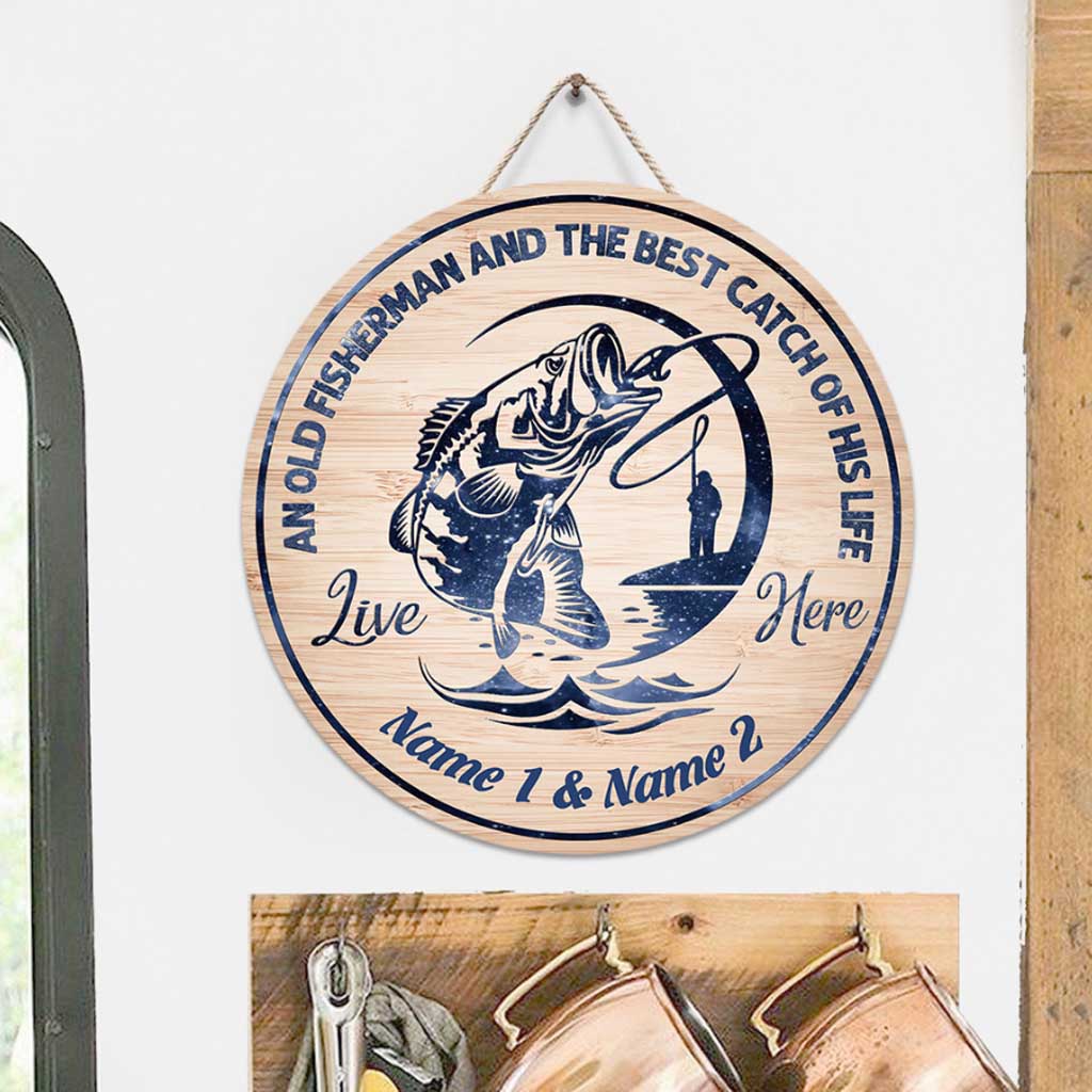 Ein alter Fischer - Personalisiertes rundes Holzschild zum Angeln