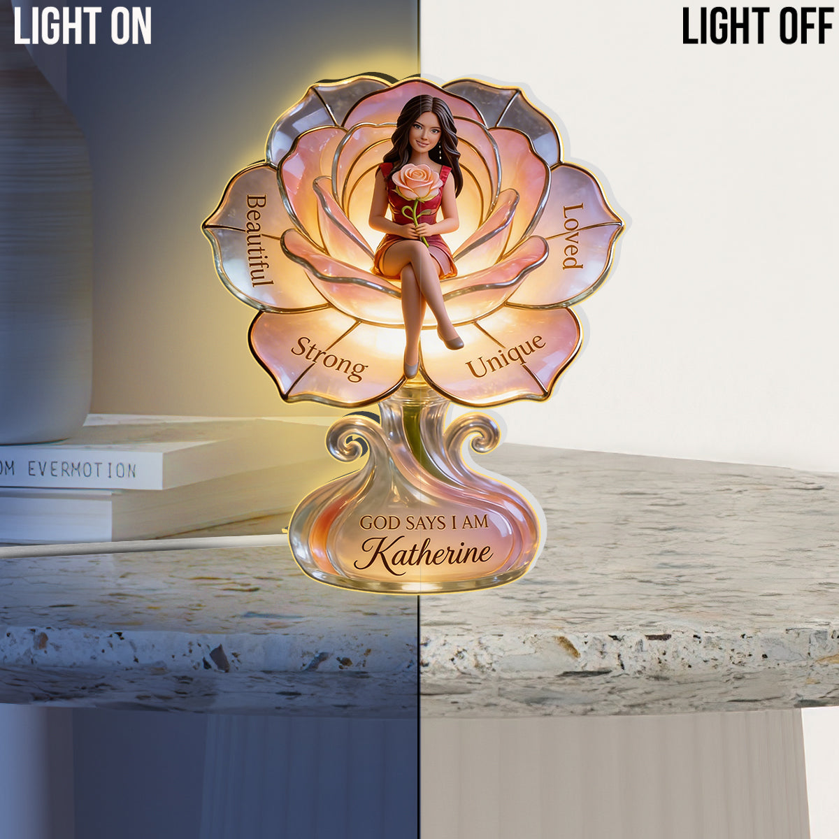 Geburtsblume nach Wunsch – personalisiertes LED-Nachtlicht aus Acryl zur Selbstliebe (Foto nach Wunsch)