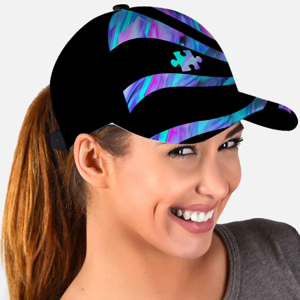Kappe zur Sensibilisierung für Autismus mit aufgedruckten Belüftungslöchern