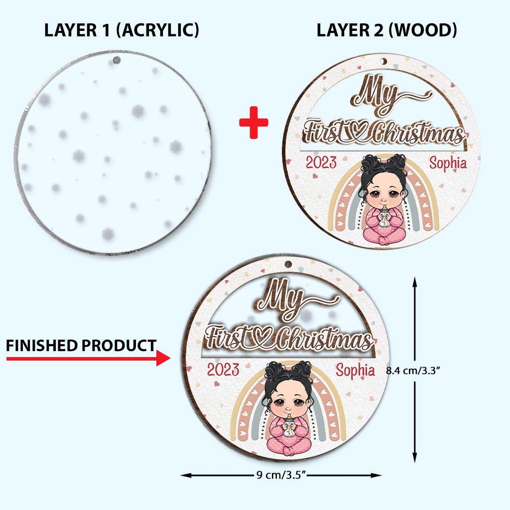 Erstes Weihnachtsfest für Babys – Personalisierter, zweilagiger Weihnachtsschmuck für Neugeborene