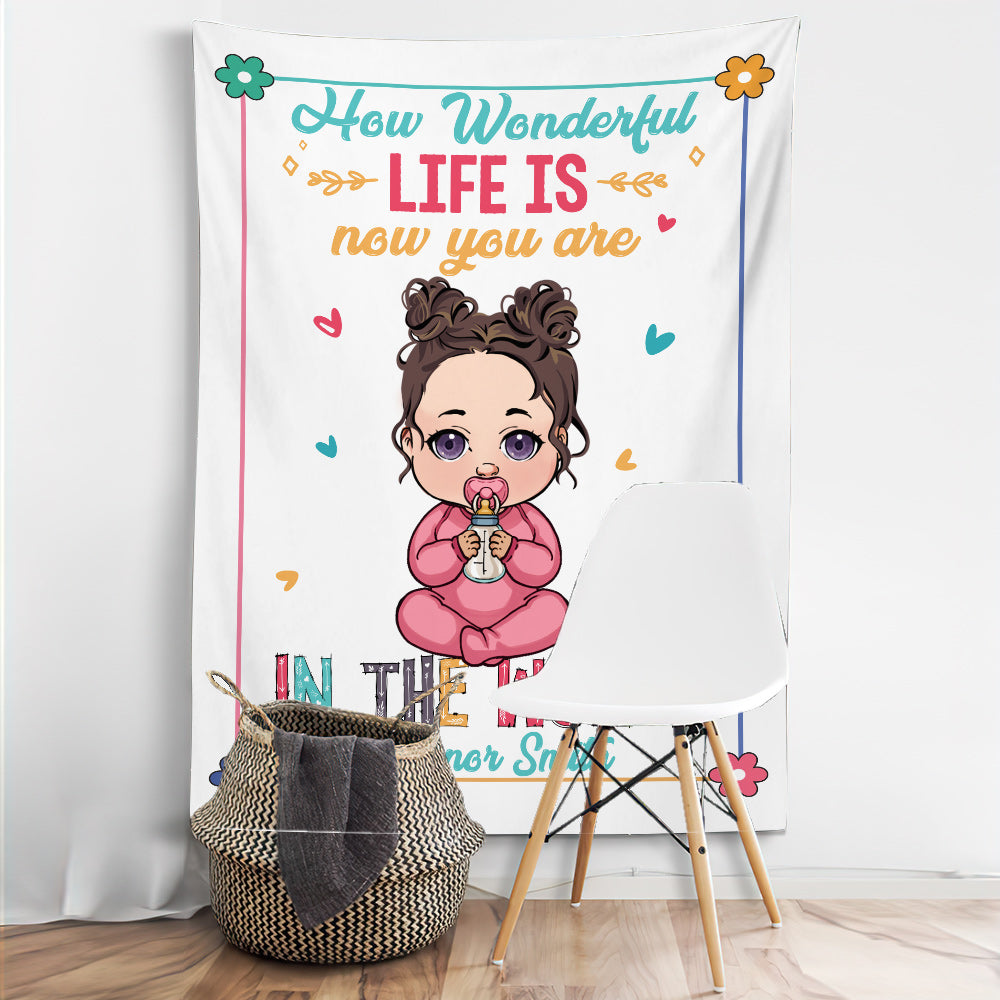 Wandteppich mit Babynamen – Geschenk für Neugeborene – Personalisierter Wandteppich