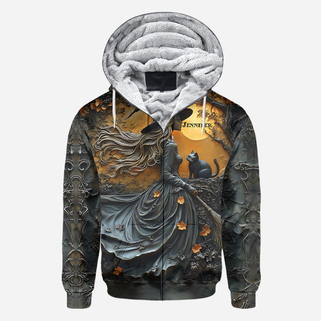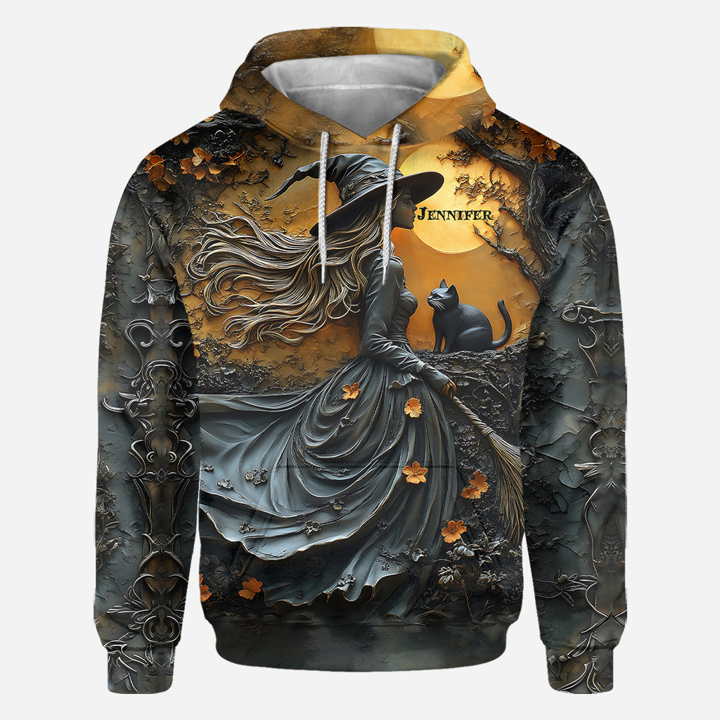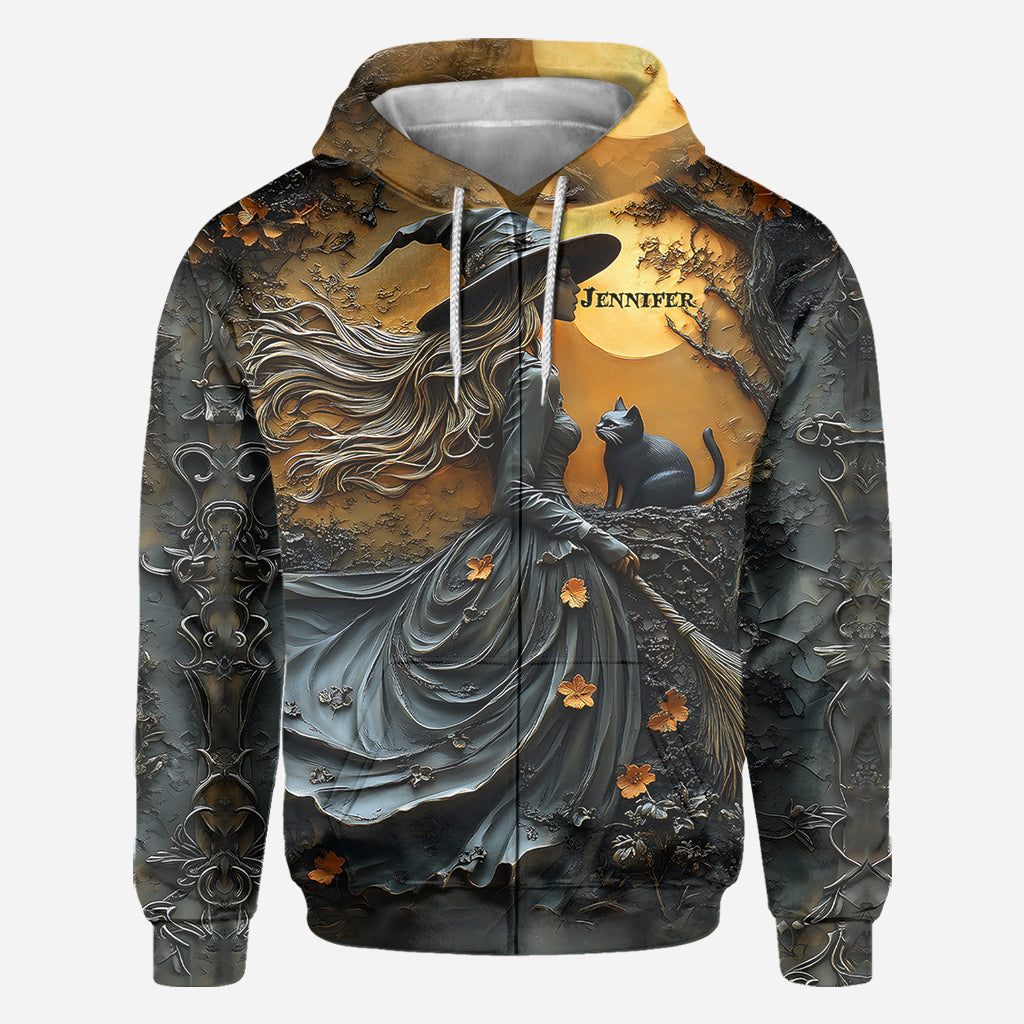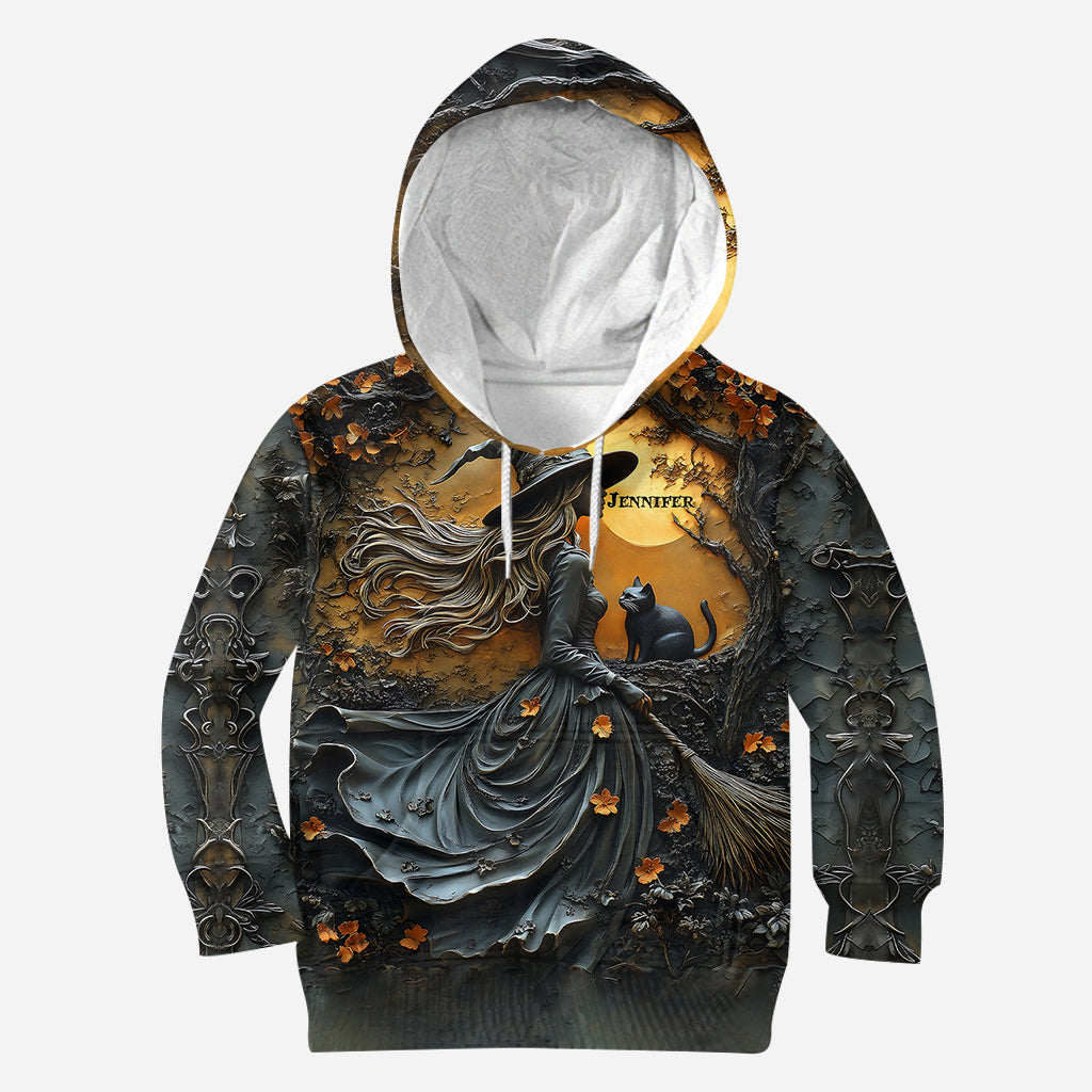 Wunderschöne Hexe und ihre schwarze Katze – personalisiertes Hexen-Shirt