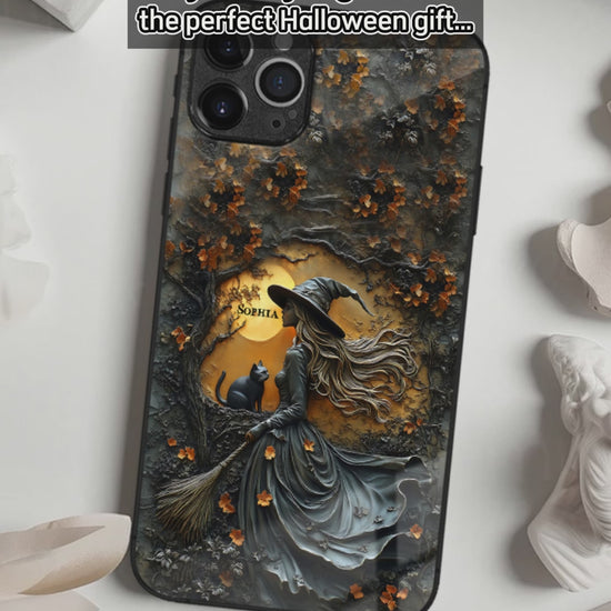 Wunderschöne Hexe & ihre schwarze Katze – personalisierte Hexen-Handyhülle