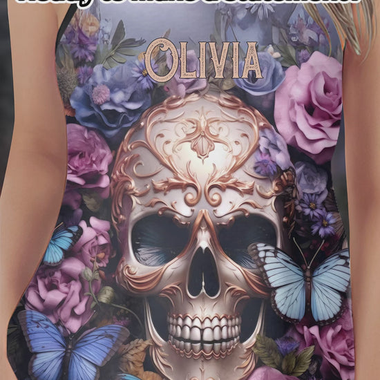 Schönheit der Dunkelheit: Totenkopf, Rosen, Schmetterlinge – Personalisiertes Tanktop mit Totenkopfkreuz