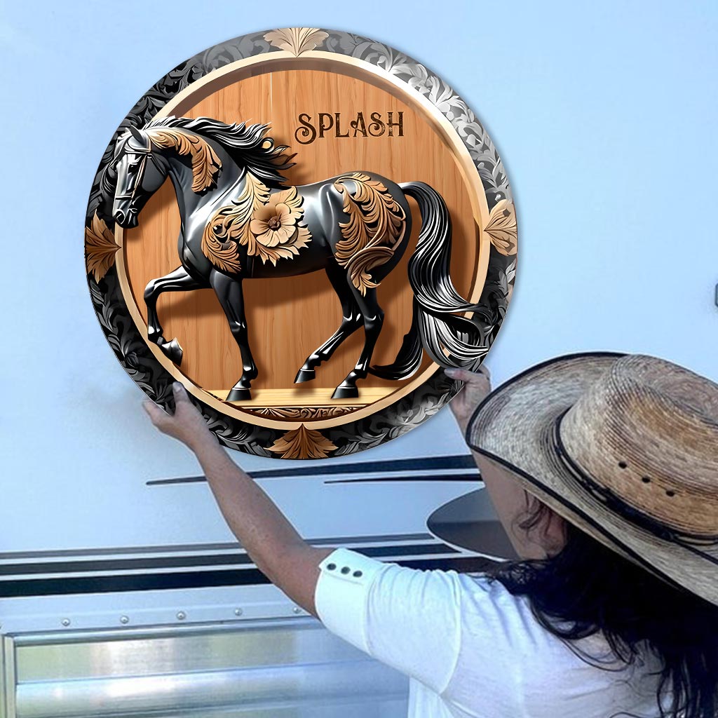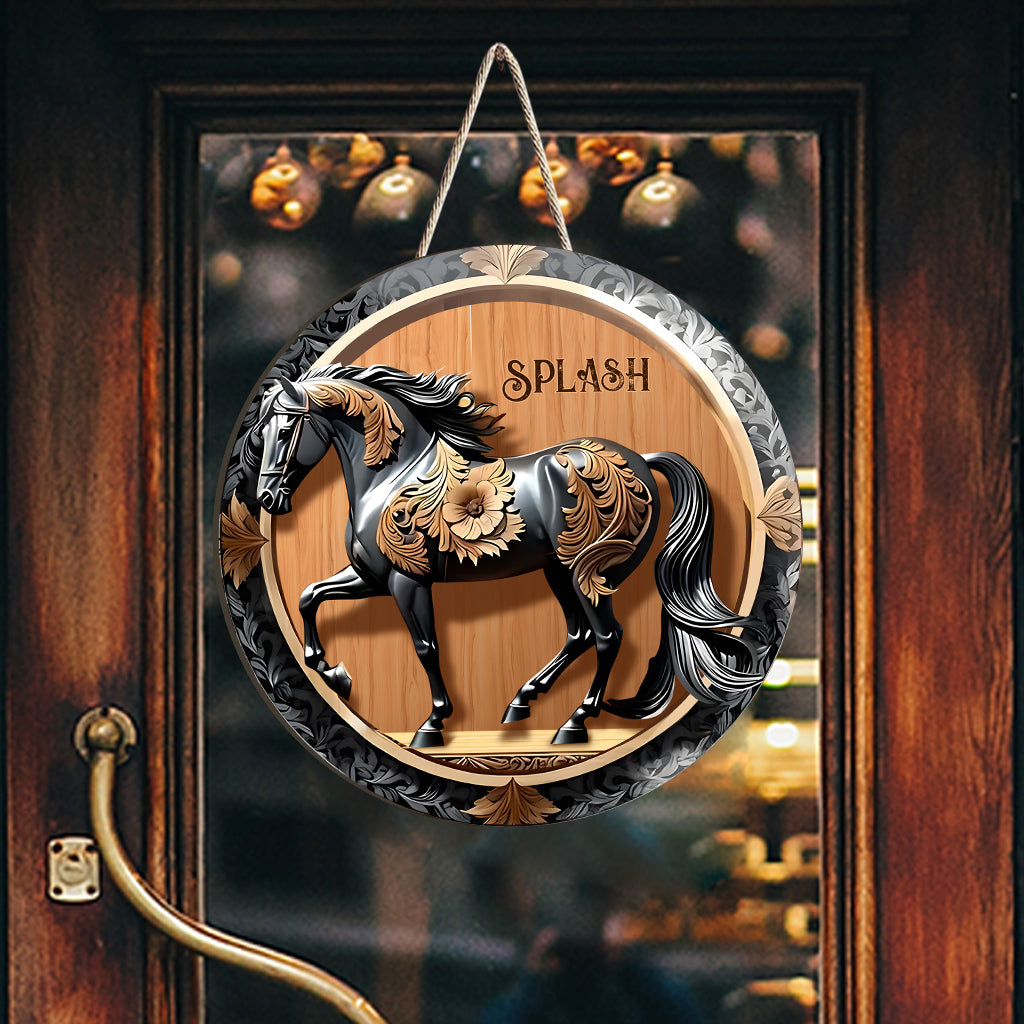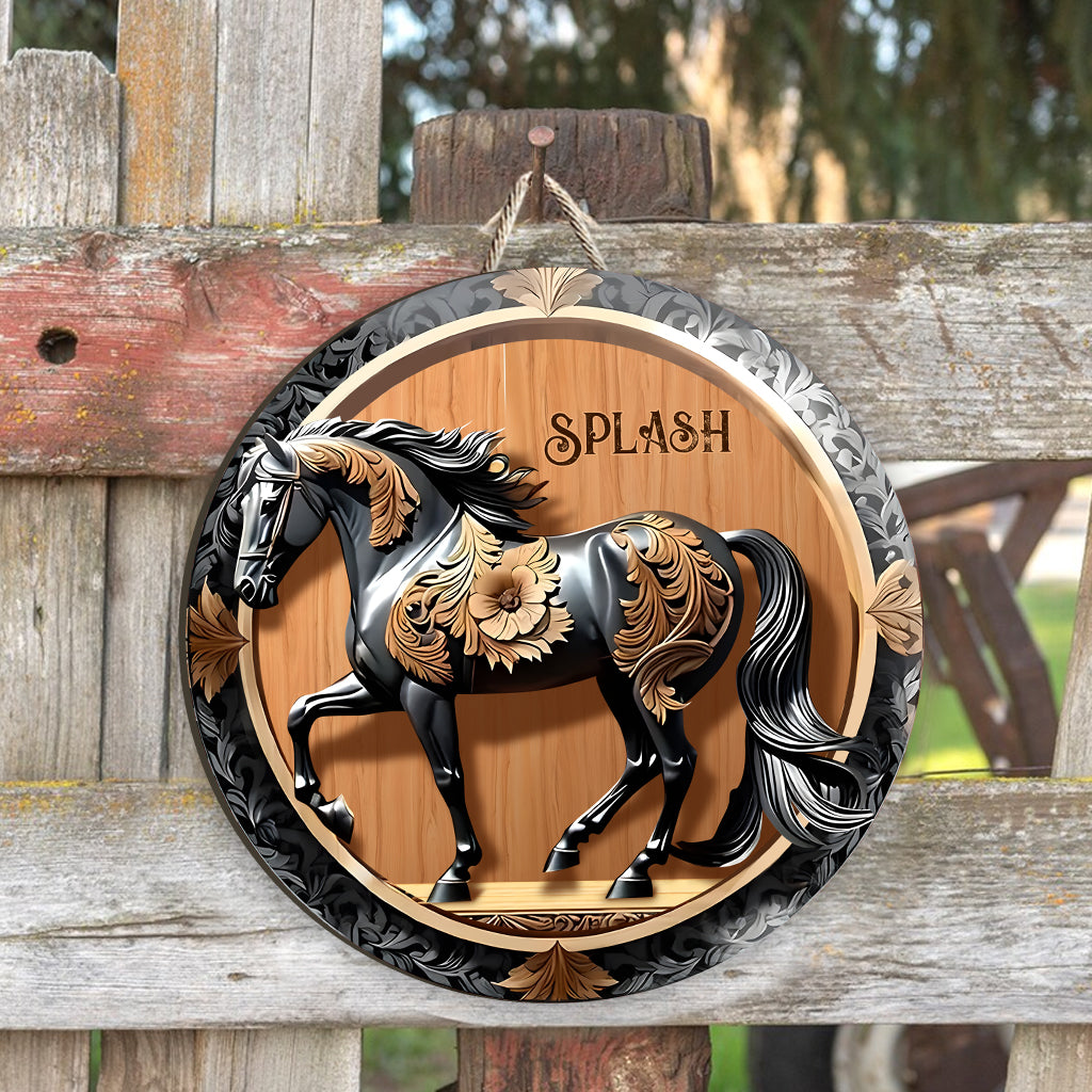 Schwarzes Pferd – Personalisiertes, individuell geformtes Holzschild