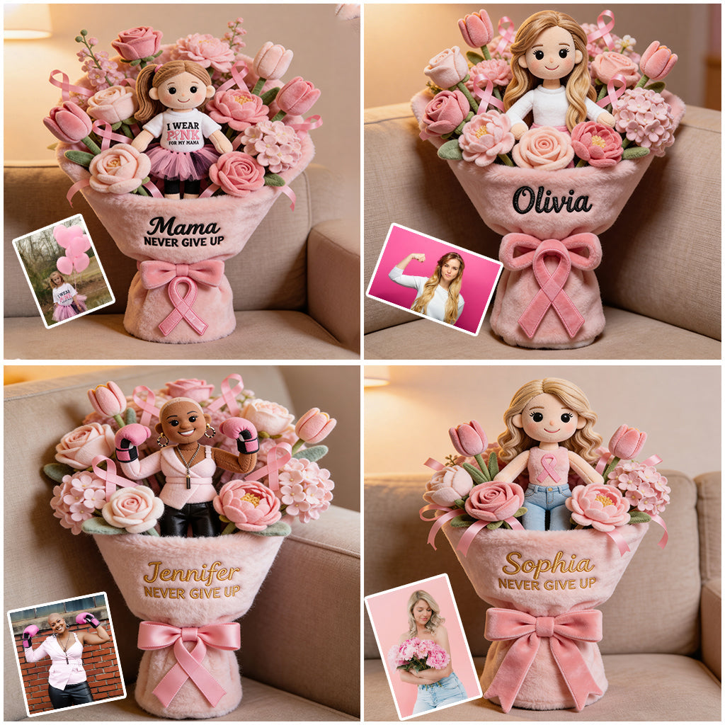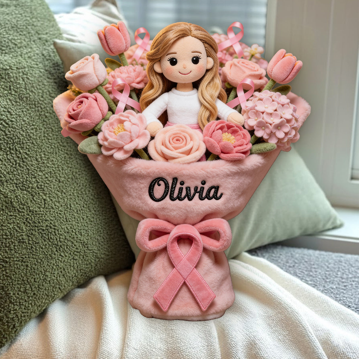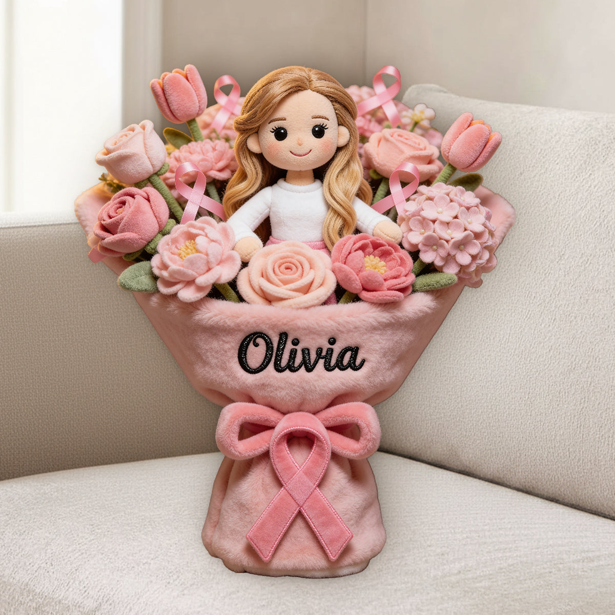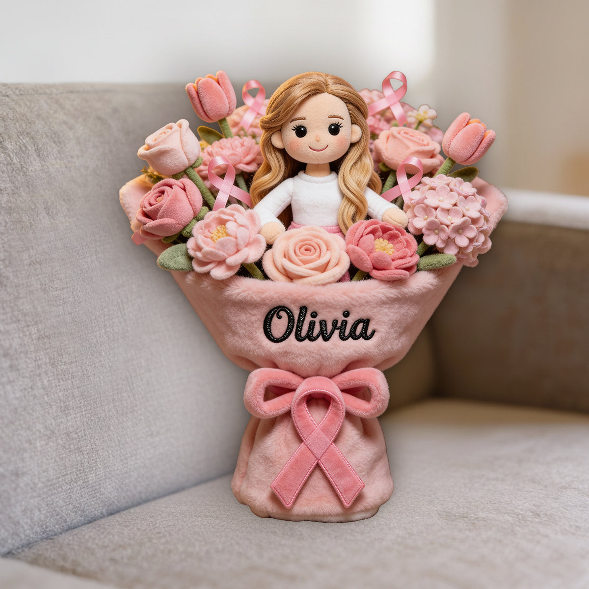 Brustkrebsbewusstsein – Personalisiertes Premium-Kunstfellkissen zum Thema Brustkrebsbewusstsein