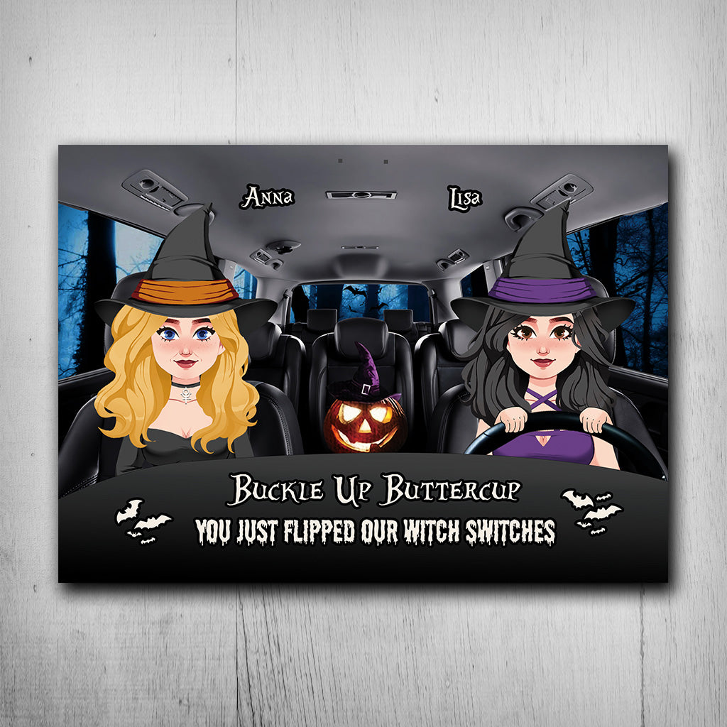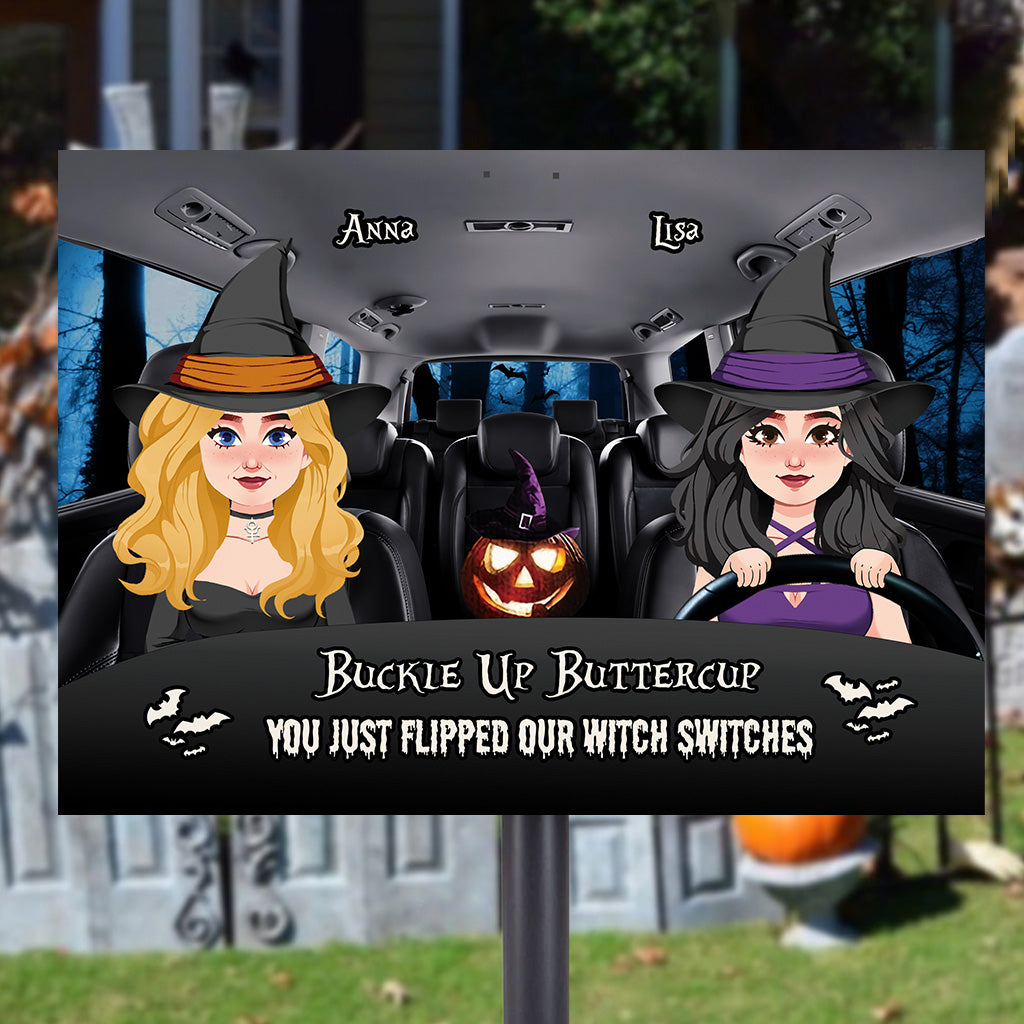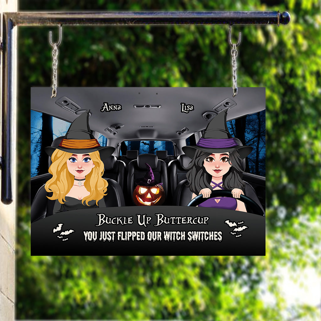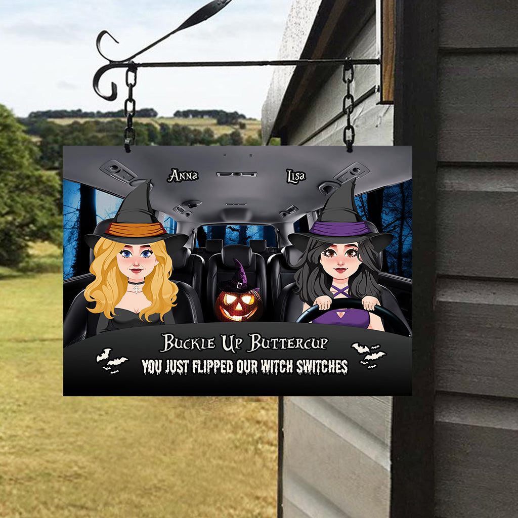 Schnalle dich an, Butterblume – Personalisiertes rechteckiges Hexen-Metallschild
