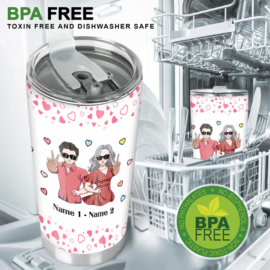 Geschenkidee mit Zuckerherzen für Liebespaare – personalisierter Partner-Trinkbecher