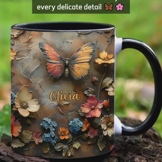 Schicke Rose & Schmetterling – Personalisierte Tasse mit Schmetterlingsmotiv