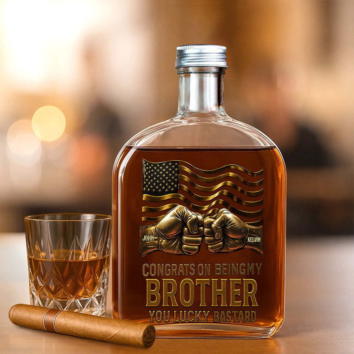 Werten Sie Ihre Hausbar mit dieser personalisierten Whiskyflasche auf – die perfekte Kombination aus Eleganz und Funktionalität. Gefertigt aus hochwertigem Glas, ist diese Flasche ein atemberaubendes Deko-Element für besondere Anlässe und Feierlichkeiten. Ob als Geschenk zum Geburtstag, zu Feiertagen, Jubiläen, zum Schulabschluss oder einfach nur, um jemandem eine Freude zu machen – diese Flasche bereitet garantiert Freude und schafft bleibende Erinnerungen. Das beidseitige UV-Druckdesign verleiht jeder Sammlung eine lebendige und langlebige Note. Mit ihren Maßen von 16,7 x 9,4 x 4,2 cm ist die Flasche ein markantes und zugleich vielseitiges Accessoire, ideal für jede Bar, jedes Regal oder jede Vitrine.