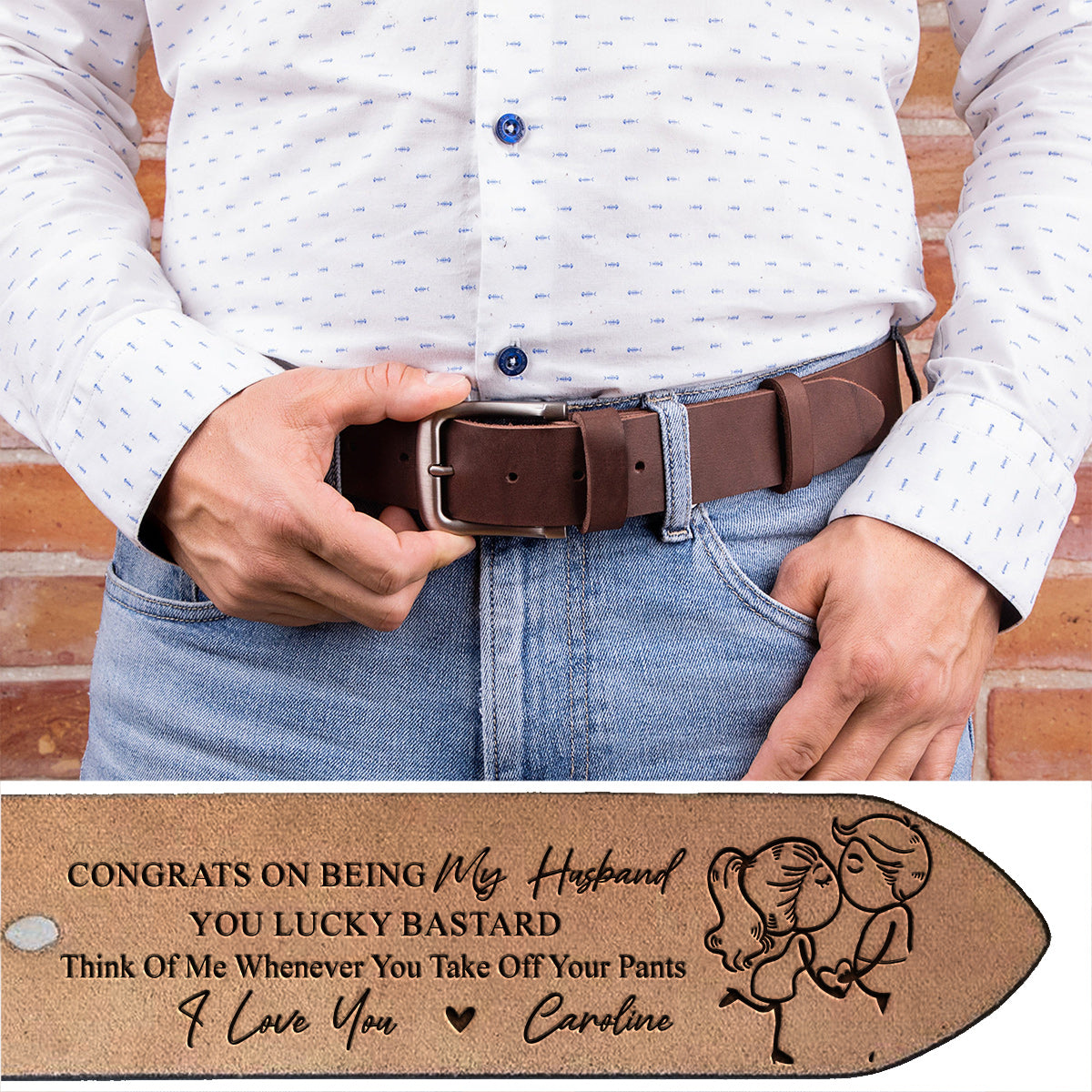 Glückwunsch, dass du mein Ehemann bist – personalisierter Ledergürtel für Ehemann und Ehefrau