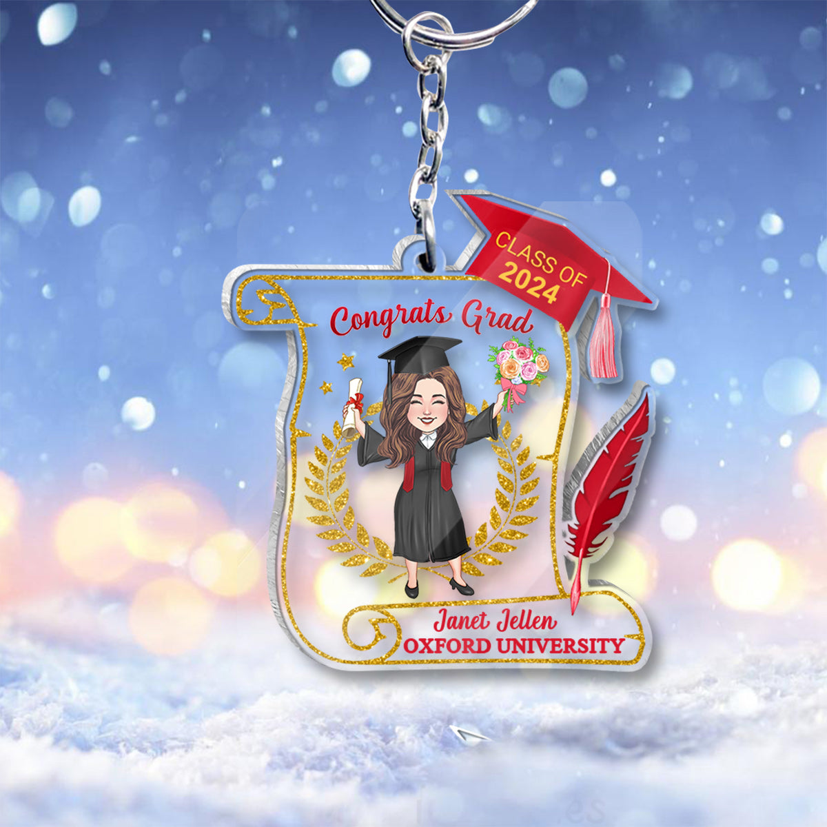 Glückwunsch zum Abschluss – Personalisierter transparenter Schlüsselanhänger