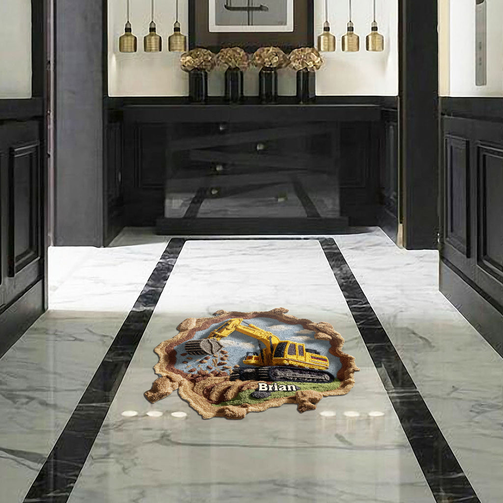 Baustellenmaschine – Personalisierte Fußmatte/Teppich in Kinderform