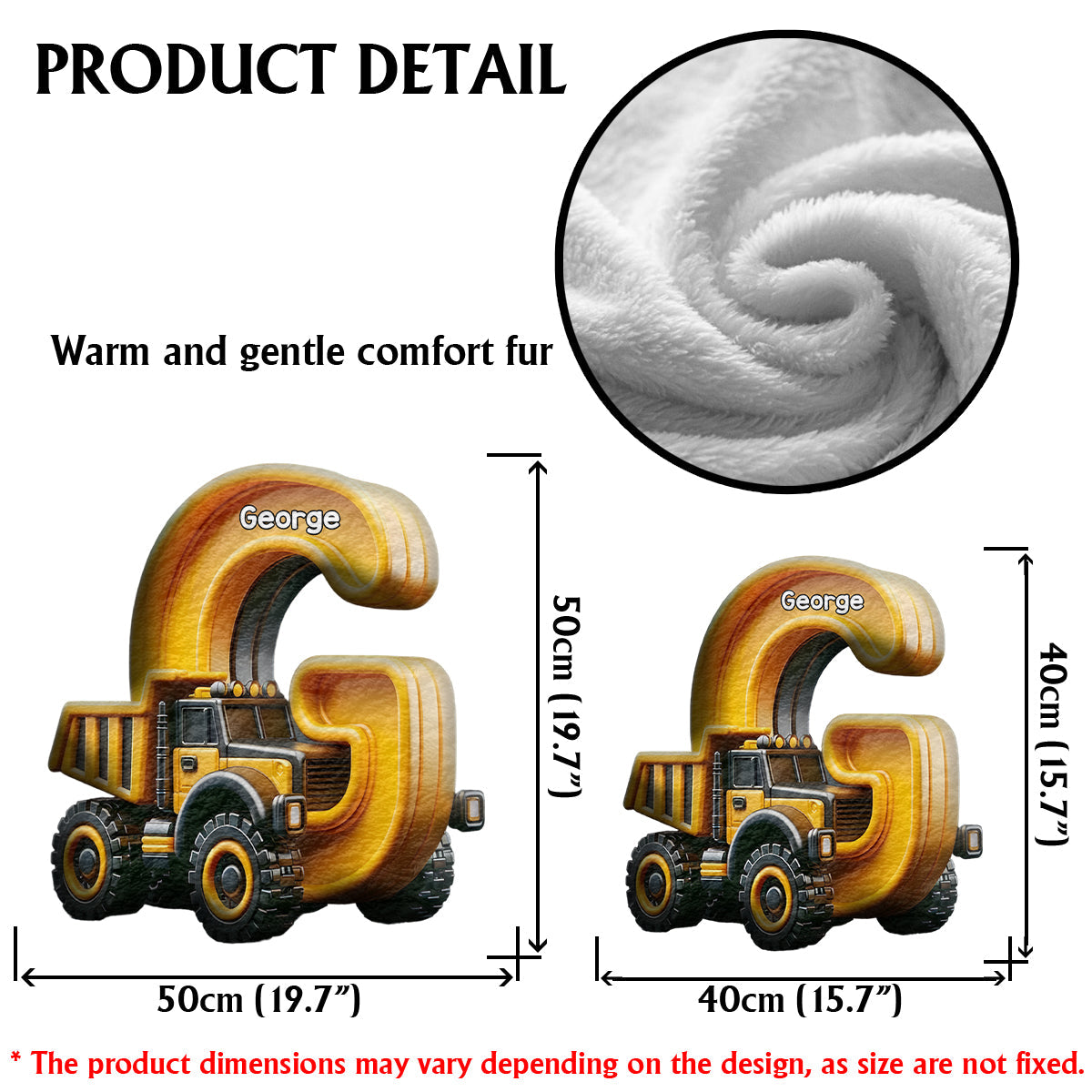 Cool Construction – Personalisiertes Kissen in Kinderform aus Kunstfell