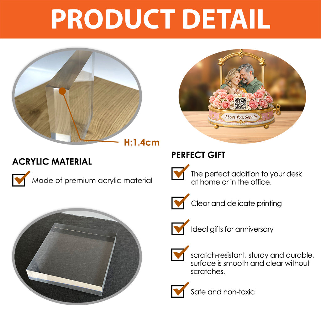 Spieluhr für Paare – Personalisierte Acrylplakette in individueller Paarform