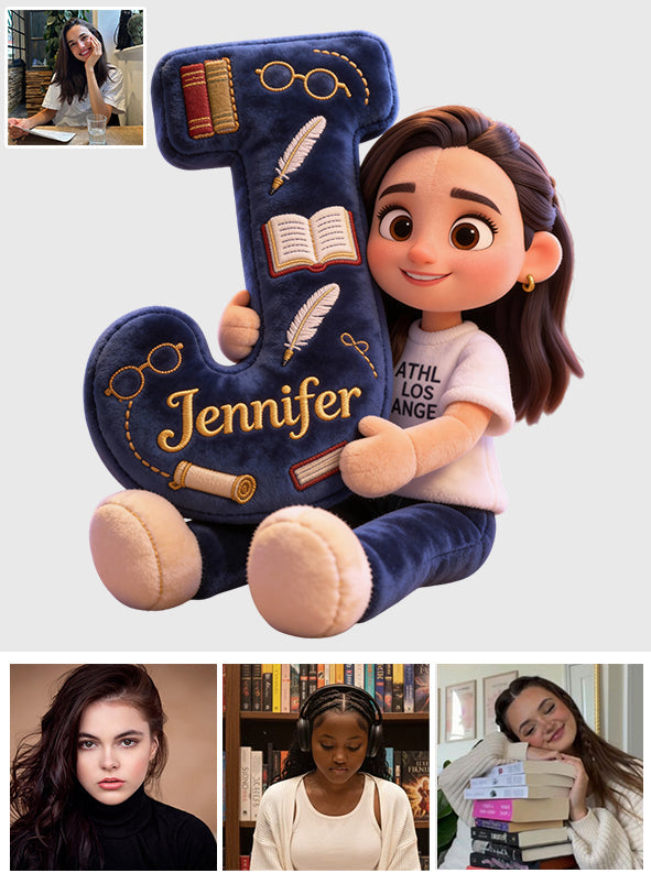 Gemütliche Alphabet-Bibliothek – Personalisiertes Kissen in Buchform aus Kunstfell
