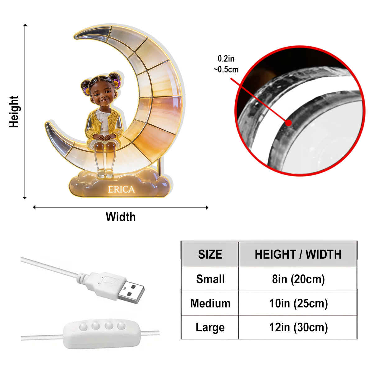 Halbmondlampe – Personalisierte LED-Nachtleuchte aus Acryl für Kinder