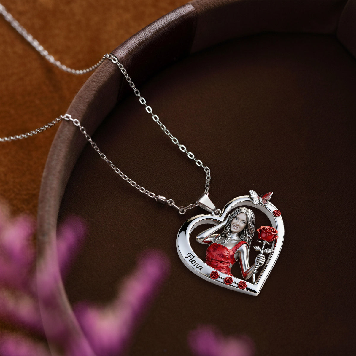 Personalisierte Halskette mit Geburtsblume und Foto – Anhänger in Form einer Liebesblume