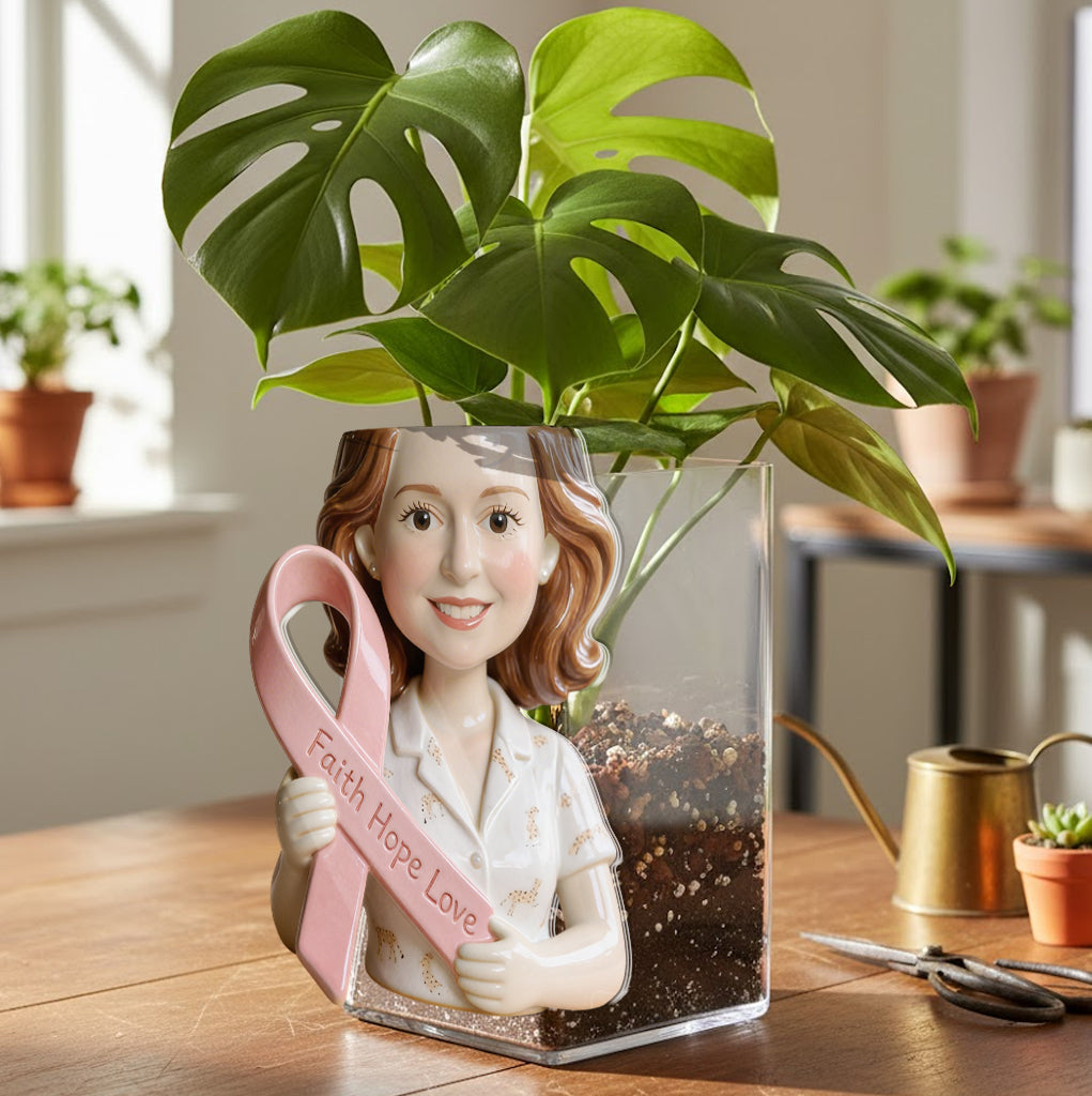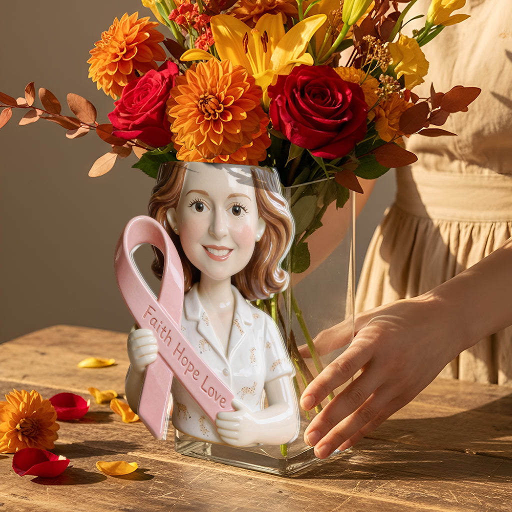 Custom Any Photo Breast Cancer Awareness - Personalized Breast Cancer Awareness Acrylic Pot