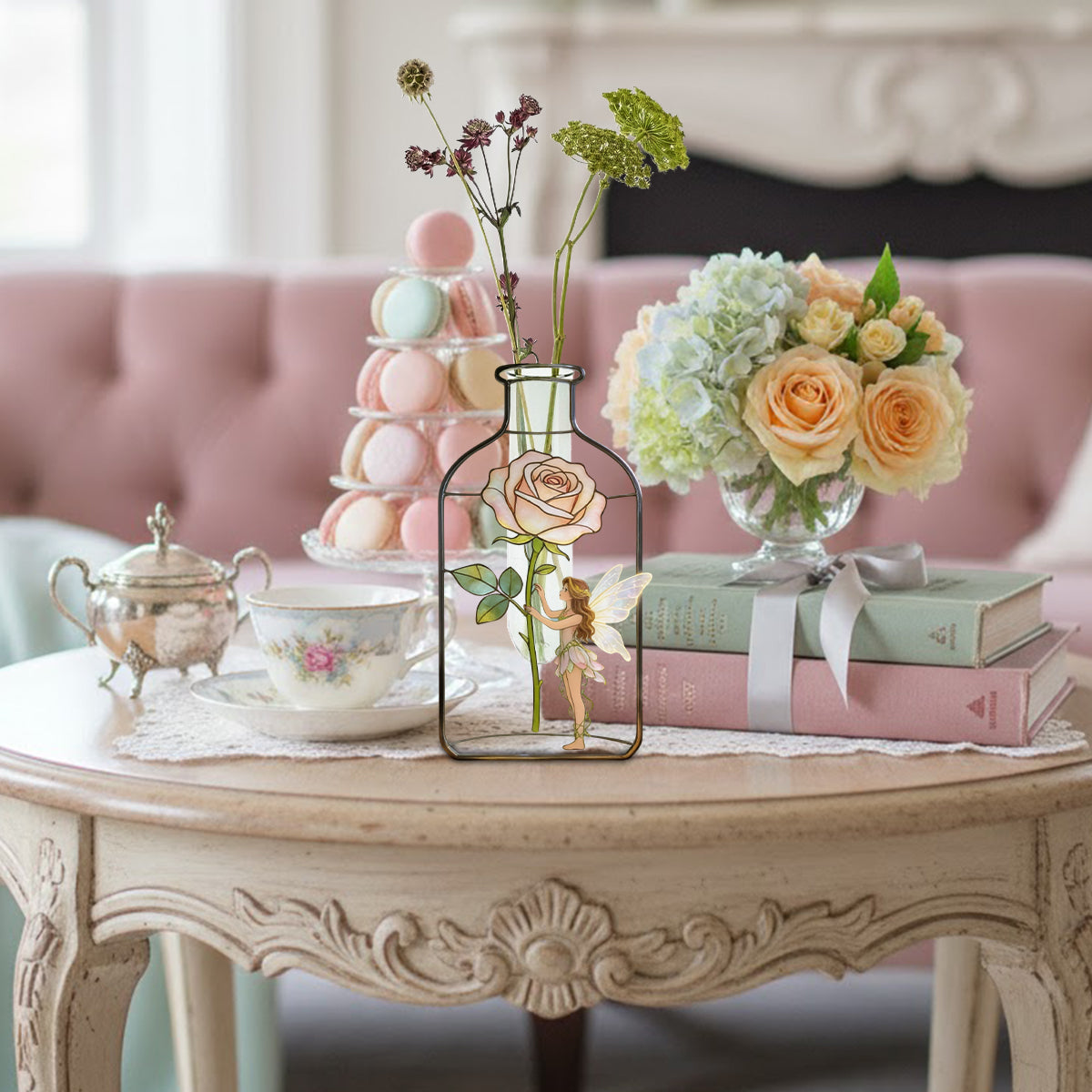 Individuell gestaltete Gartenfee mit Lieblingsblume – Personalisierte Acryl-Blumenvase in Sonderform