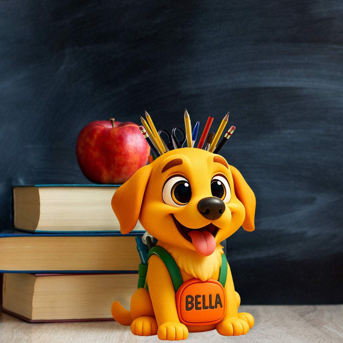 Niedlicher Stiftehalter für den Schreibtisch (Hund/Katze) – Personalisierter Schreibtisch-Organizer aus Holz mit Hundemotiv