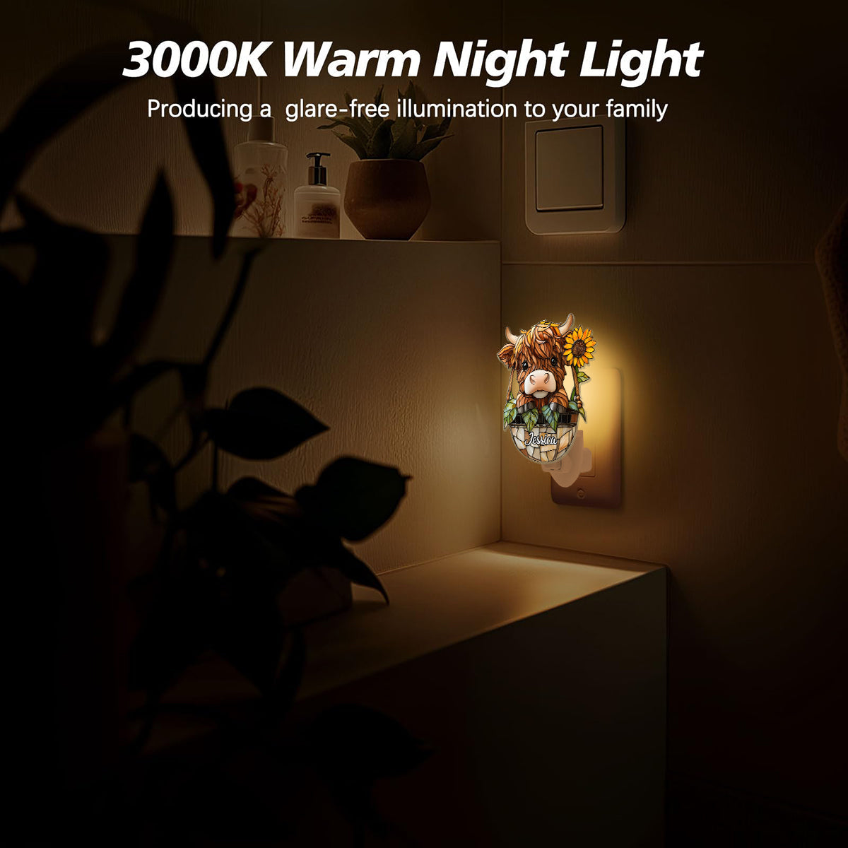 Niedliches Hochlandrind – Personalisierte Hochlandrind-Nachtleuchte aus Acryl zum Einstecken