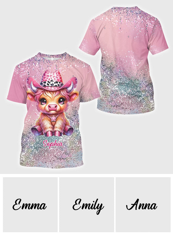 Niedliches Hochlandrind - Personalisiertes T-Shirt mit Hochlandrind-Allover-Print