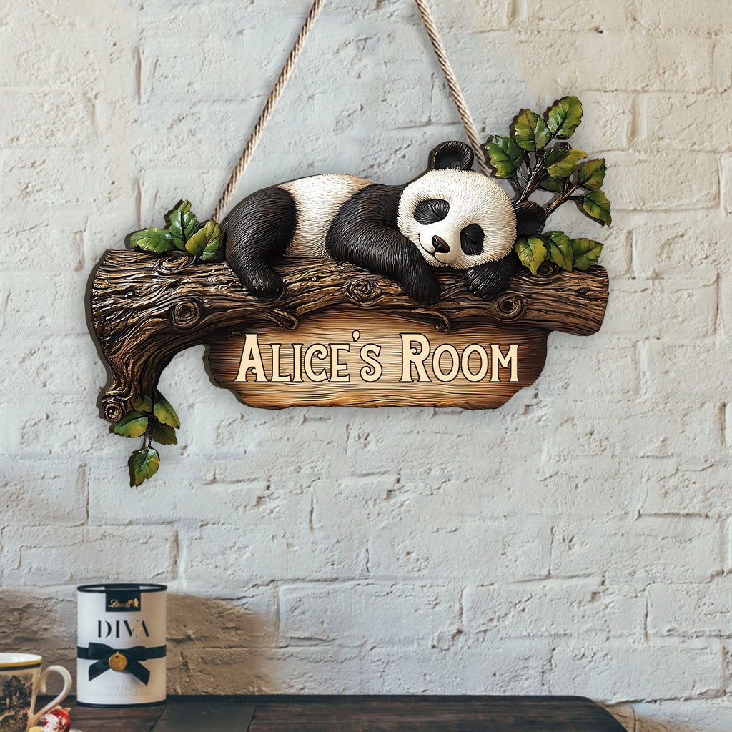 Niedliches Panda-Schlafzimmerschild – Personalisiertes Holzschild für Panda-Liebhaber in individueller Form