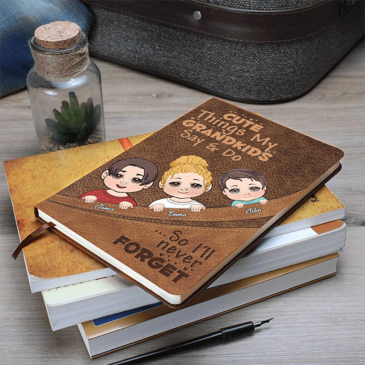 Süße Dinge, die meine Enkelkinder sagen und tun – Personalisiertes Oma-Lederjournal