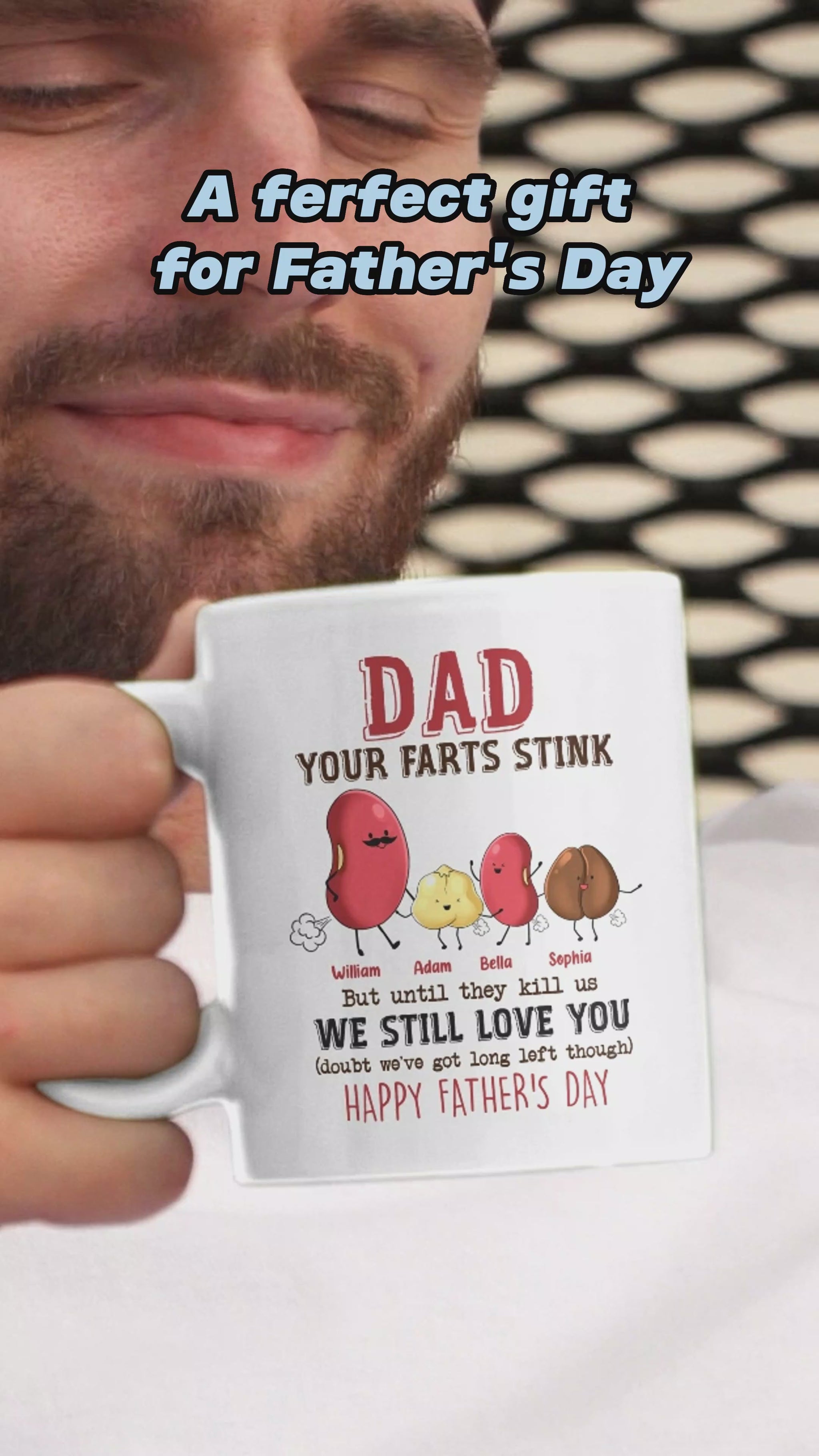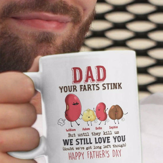 Papa, deine Fürze stinken, aber ich hab dich trotzdem lieb – personalisierte Vater-Tasse