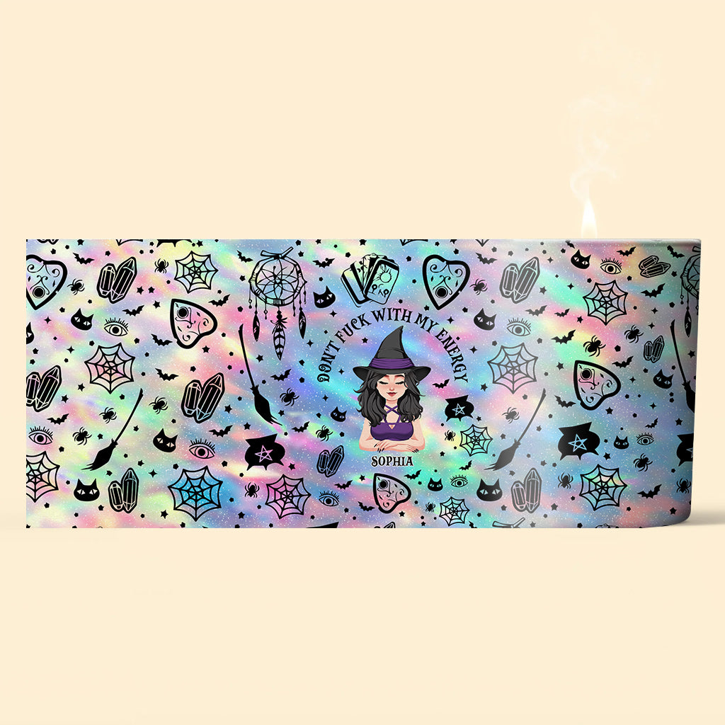 Leg dich nicht mit meiner Energie an – Personalisierte Hexenkerze mit Holzdeckel