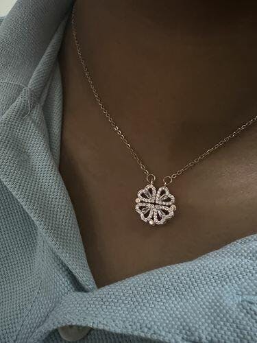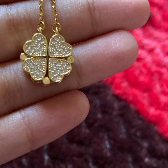 So schön wie die Liebe selbst – unsere Halskette ist eine bezaubernde Interpretation klassischer Liebe. Sie kann auf zwei Arten getragen werden: als Glücksklee oder als romantisches Symbol mit vier Herzen. Der Anhänger verbindet die Herzen magnetisch zum Kleeblatt.