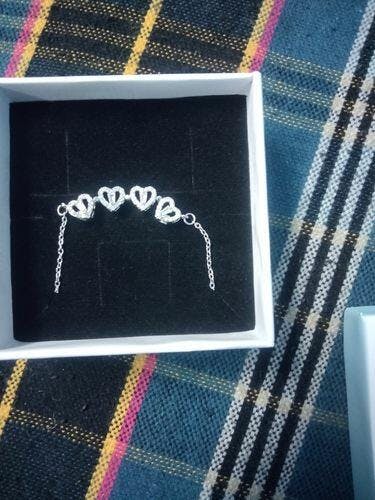 Die aus Kupfer handgefertigte und mit glänzenden Zirkonkristallen verzierte Clover Hearts Halskette verleiht jedem Outfit eine elegante und raffinierte Note.
