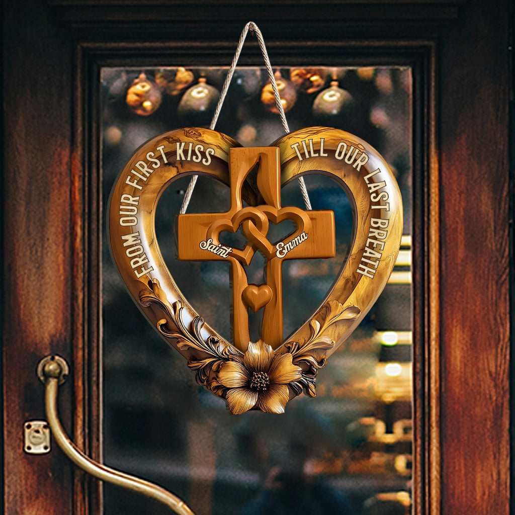 Von unserem ersten Kuss – personalisiertes Holzschild in individueller Pärchenform