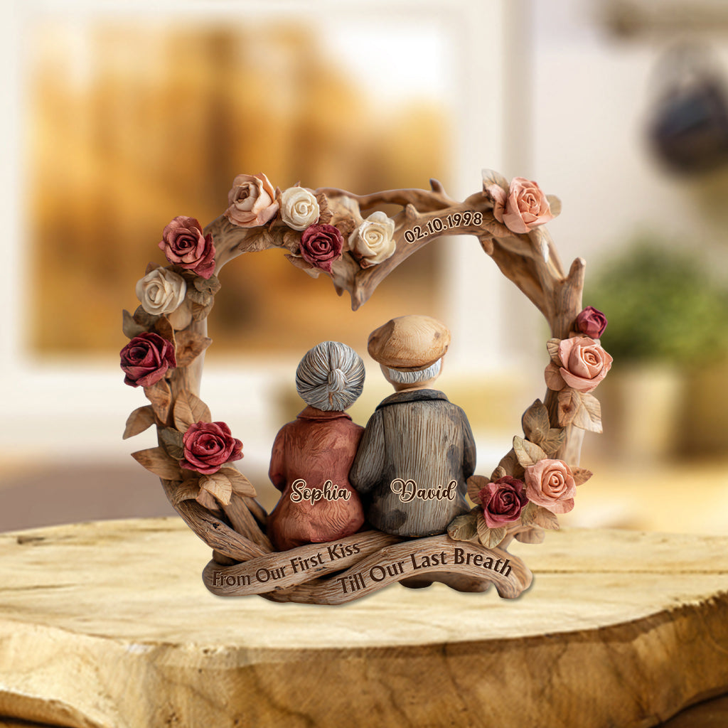 Vom ersten Kuss bis zum letzten Atemzug – personalisierte Acrylplakette in individueller Paarform