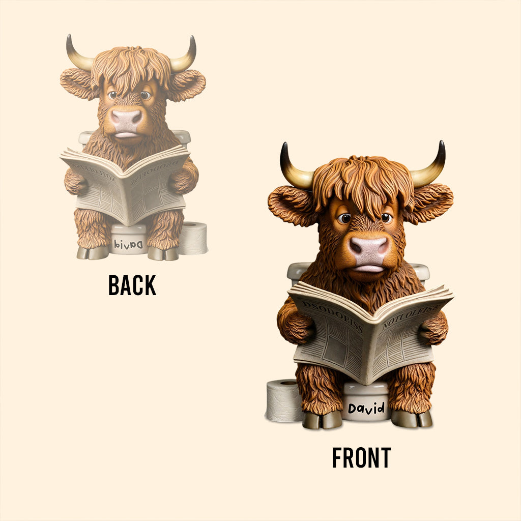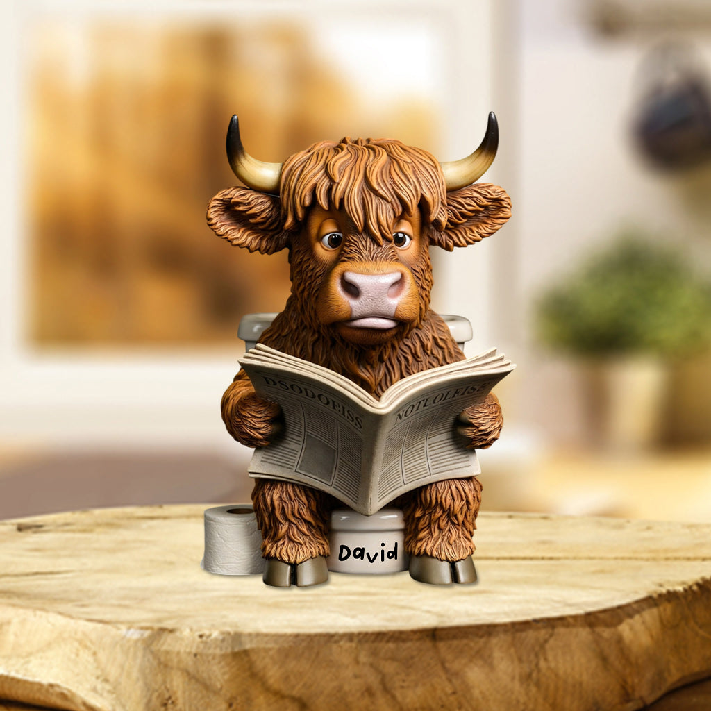 Witzige Badezimmerdeko – Toiletteneimer mit Hochlandkuh-Motiv – Personalisierte Acrylplakette in Hochlandkuh-Form