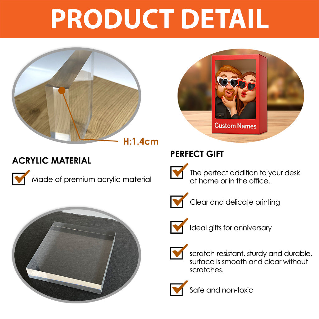 Lustiges Geschenk im cartoonhaften, übertriebenen Maskottchen-Stil – personalisierte Acrylplakette in individueller Form für Paare