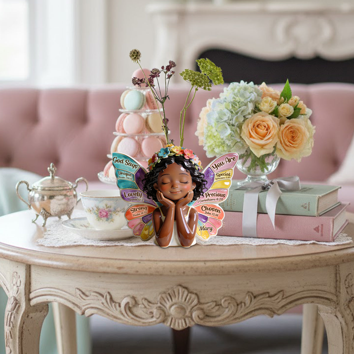 Gott sagt, du bist es – Personalisierte Acryl-Blumenvase in individueller Form für Afroamerikaner