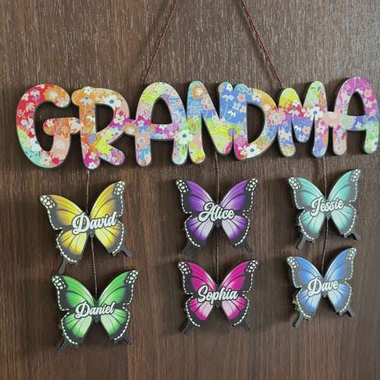 „Oma und Kinder Schmetterling“ – Individuell gestalteter Titel – Personalisiertes Oma-Schild aus Palettenholz
