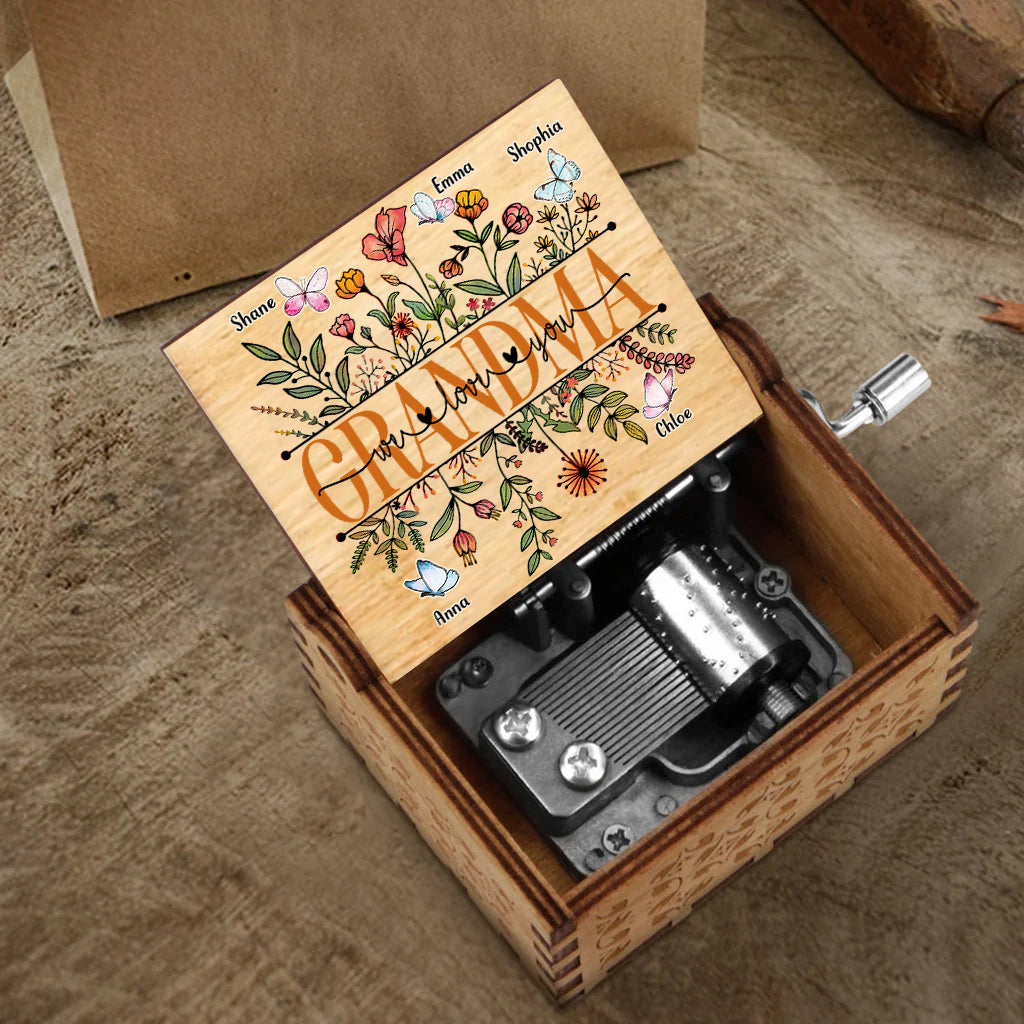 Oma, wir lieben dich – Personalisierte Muttertags-Spieluhr mit Handkurbel