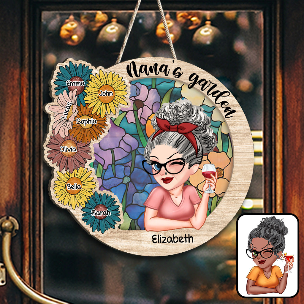 Omas Garten – Personalisiertes, individuell geformtes Holzschild „Oma“