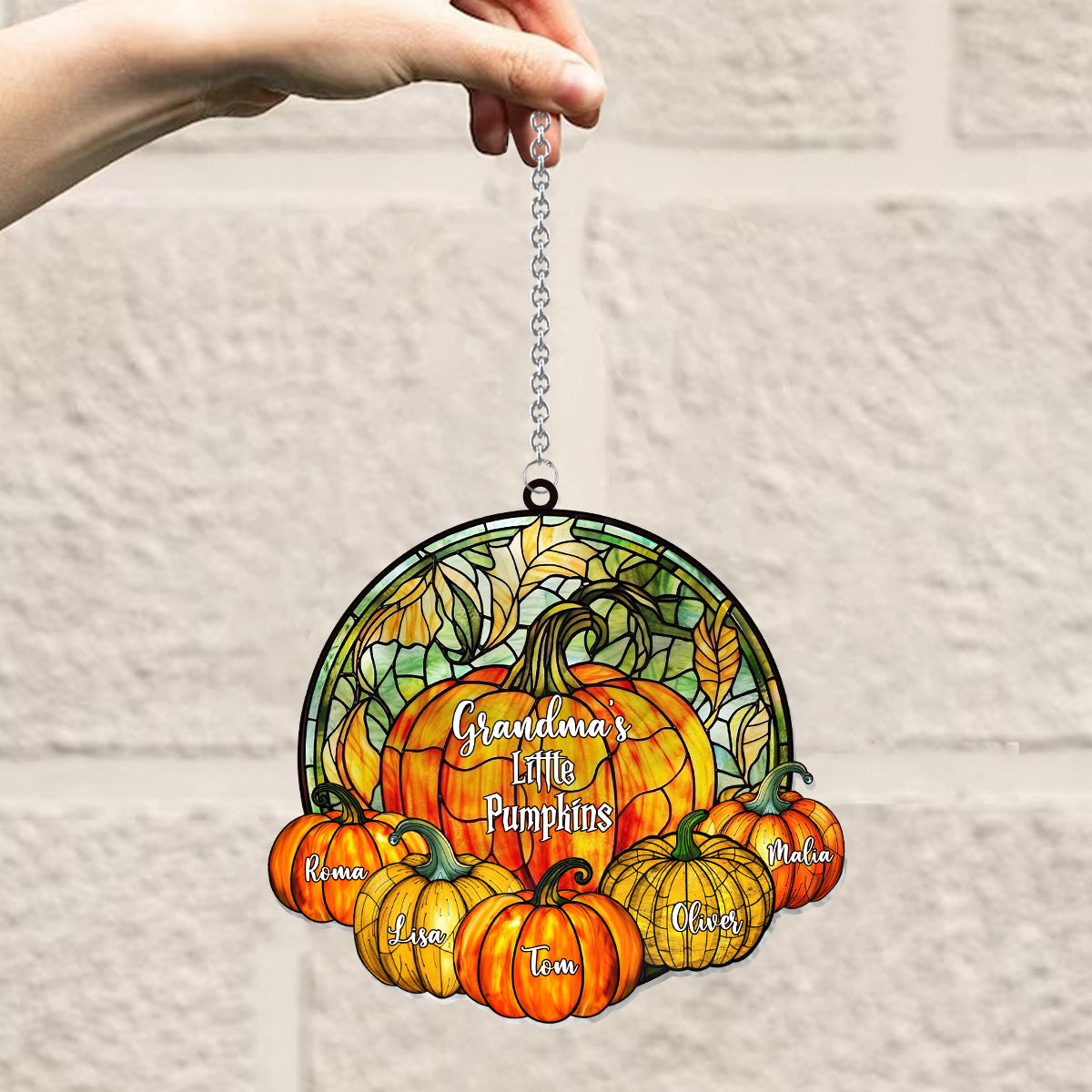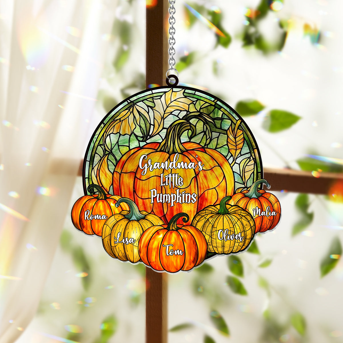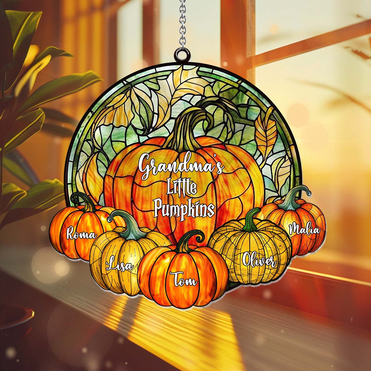 Omas kleine Kürbisse – Beliebiger Titel – Personalisierter Oma-Fensterhänger-Sonnenfänger