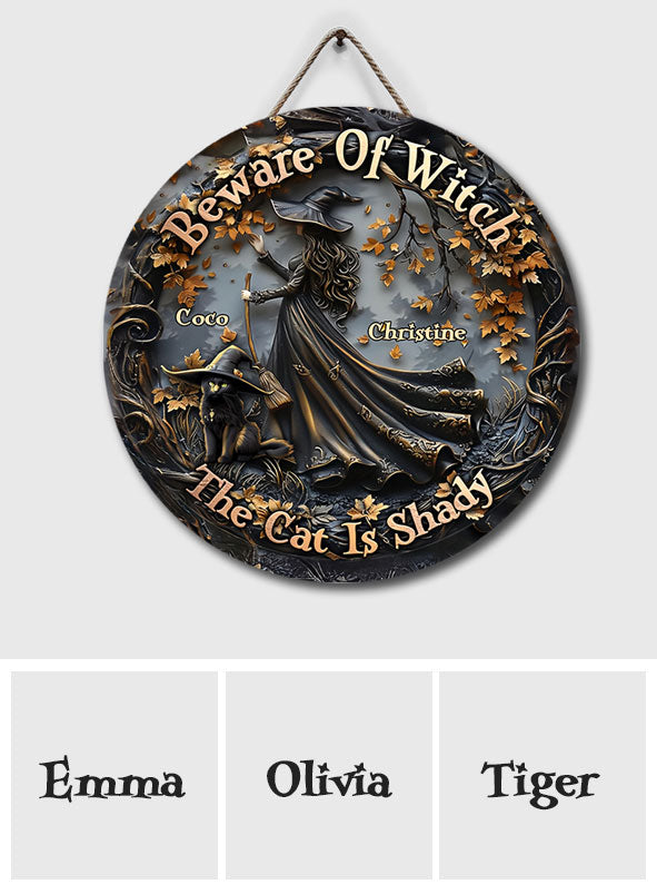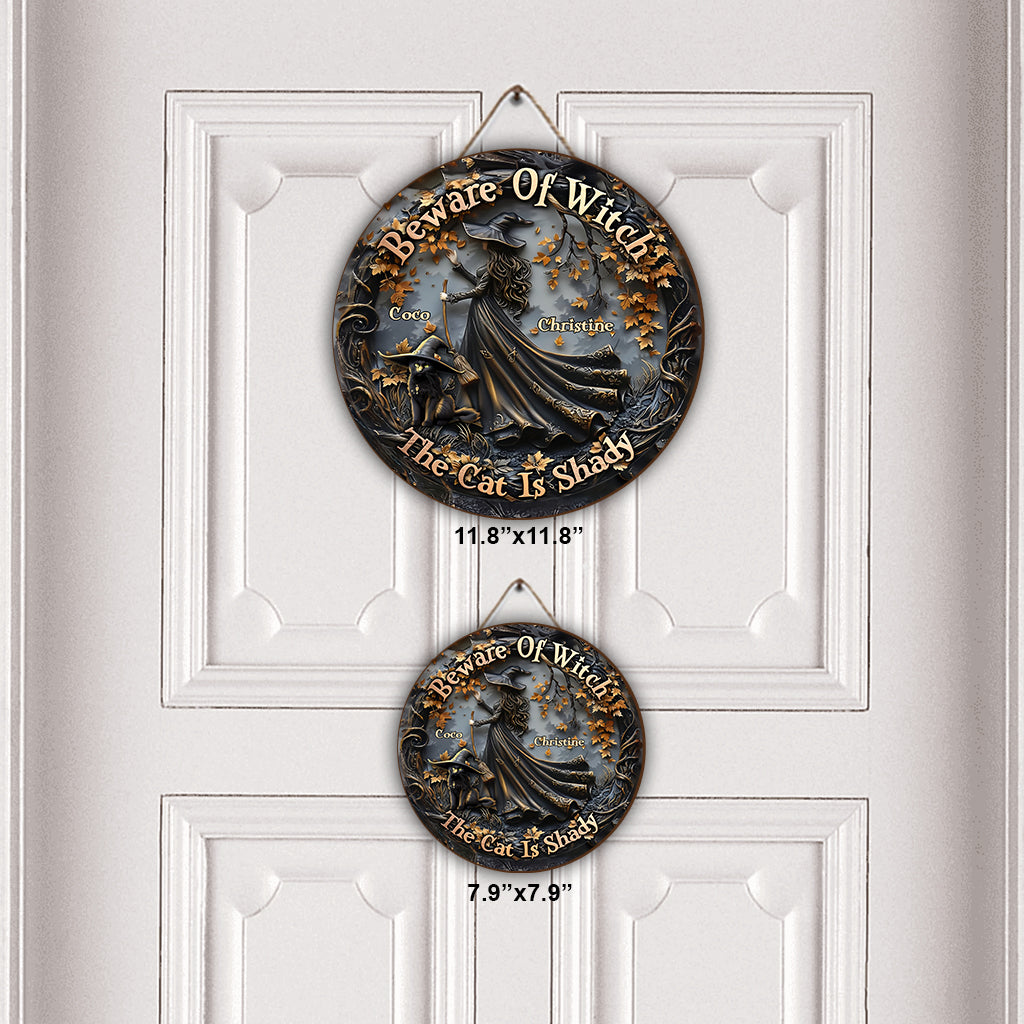 Halloween ist schöner mit einer Katze – Personalisiertes rundes Holzschild mit schwarzer Katze