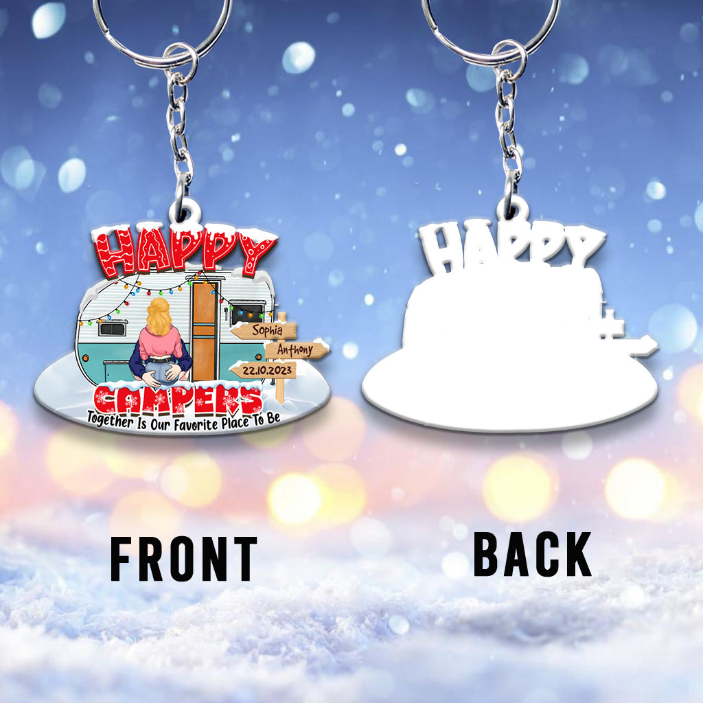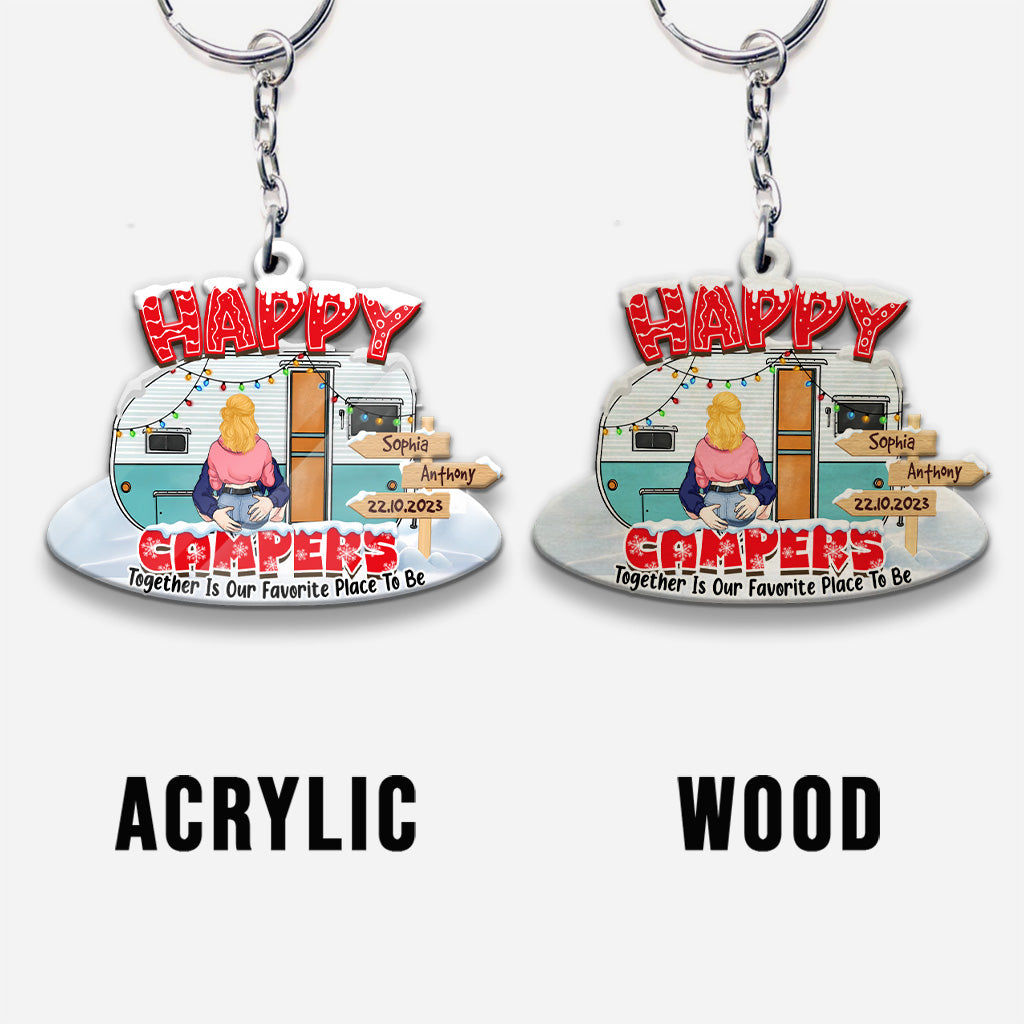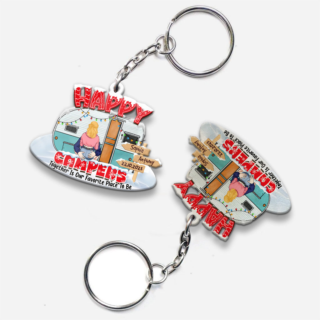 Glückliche Camper – Campinggeschenk für Ehemann, Ehefrau, Freund, Freundin – Personalisierter Schlüsselanhänger