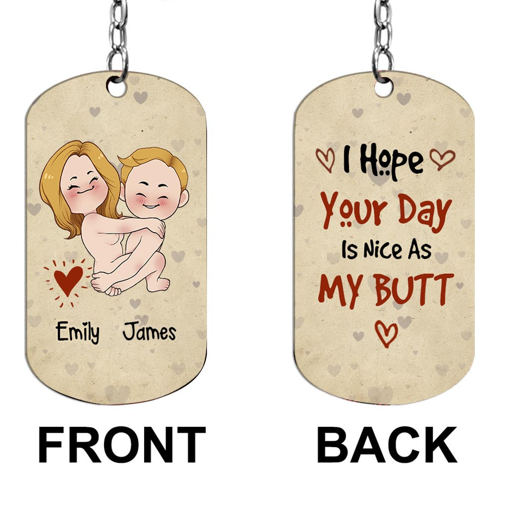 Ich hoffe, dein Tag ist so schön wie mein Hintern – personalisierter Edelstahl-Schlüsselanhänger für Paare