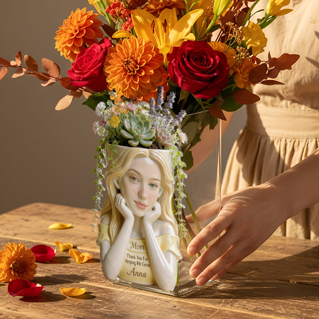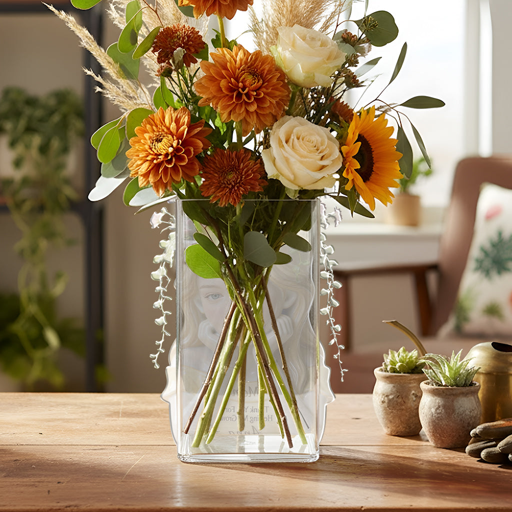 The front acrylic panel is printed on one side with vivid, high-quality colors, adding depth and personality while keeping a clean, modern look. The pot’s height and proportions make it suitable for small plants, fresh flowers, dried arrangements, or artificial bouquets, making it a flexible décor piece for homes, offices, or gift-giving.