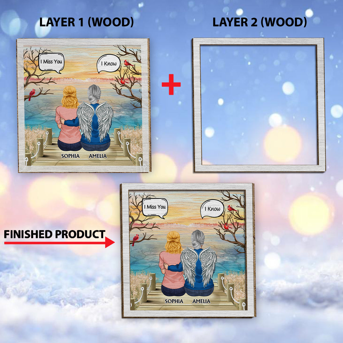 Ich vermisse dich, ich weiß – personalisiertes Gedenkschild aus zweilagigem Holz / Holzplakette